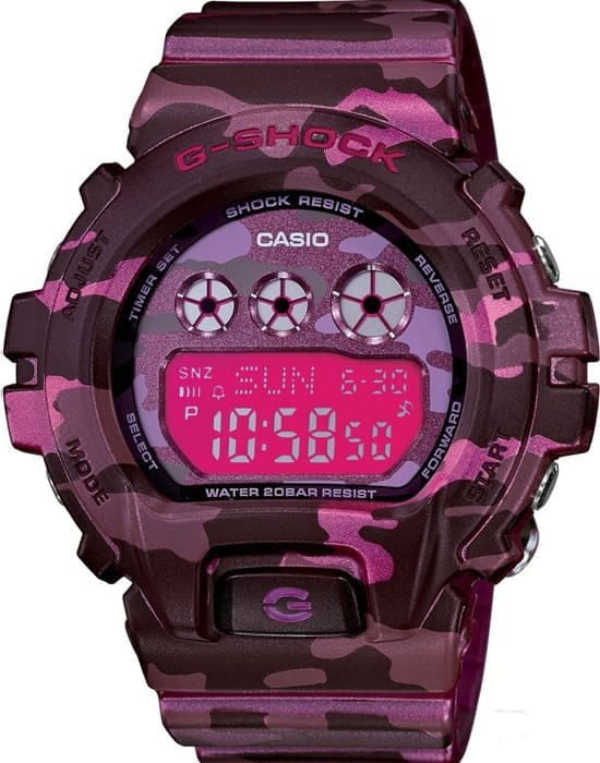 Спортивные, ударопрочные наручные кварцевые женские часы. Цифровой циферблат розового цвета. Корпус часов выполнен из алюминия с пластиком. Минеральным стекло, устойчиво к появлению царапин. Часы надежно удерживаются на руке ремешком из высокопрочного пластика. Водонепроницаемость 200М. Из дополнительных функций в часах присутствует: секундомер, таймер, будильник, вечный календарь, автоподсветка.