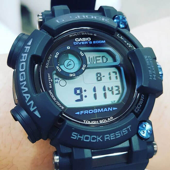 Мужские японские часы-хронографХронографФункция позволяет измерять отрезки времени с особой точностью: часы, минуты, секунды. Верным признаком хронографа является наличие на циферблате 3 дополнительных окошек-счётчиков. Casio G-Shock GW-9400Y-1E с сапфировым стекломСапфировое стеклоПрочный и надёжный материал из кристалла сапфира синтетического происхождения, характеризующийся особой твёрдостью и устойчивостью к царапинам и повреждениям. из коллекции G-Shock представляют собой многофункциональный помощник с брутальным дизайном. Новика часов Frogman для профессиональных дайверов и спасателей, выполняющих сложнейшие подводные задачи. Оснащены глубиномером, термометром и компасом. Frogman. Питание от солнечной энергии Tough Solar - солнечные батарейки большой мощности, индикатор заряда батареи. Функция автоматического сохранения энергии. Время работы аккумулятора без подзарядки до 7 месяцев, при включенной функции сохранения энергии до 23 месяцев. Наручные часы оснащены различными функциями, которые по достоинству оценят любители путешествовать: отображение восхода и заката солнца, термометр -10°C /+60°C, барометр, высотомер, таймерТаймерОтсчитывает секунды в обратном направлении в заданном интервале времени., мировое времяМировое время Полезное часовое усложнение, отображающее время в основных городах и известных областях по всему миру, оно связано с часовыми поясами, удобно для путешественников и бизнесменов. , 5 будильников, секундомерСекундомерСекундоме́р — прибор, способный измерять интервалы времени с точностью до долей секунды., цифровой компас. Японский кварцевый механизм. Технология . Мировое время Мировое время Полезное часовое усложнение, отображающее время в основных городах и известных областях по всему миру, оно связано с часовыми поясами, удобно для путешественников и бизнесменов. – 48 городов (31 часовой пояс), всемирное координированное время (UTCUTCВсемирное кординационное время, не имеющее привязки к географическому положению Гринвича, основывается на атомном отсчёте времени. Регулировка времени осуществляется более точно, чем устаревшее GMT.
