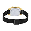 Японские женские часы с органическим стеклом Casio Collection LA670WEMB-1DF, кварцевый механизм с высокой точностью. Корпус часов изготовлен из пластика. Класс водозащиты: 30 метров, позволит защитить корпус от случайных брызг или капель дождя. Стальной браслет миланского плетения с IP-покрытиемIP-покрытиеМетод ионного напыления. Демонстрирует повышенную устойчивость к истиранию, окислению и химическим веществам. Под воздействием высокого давления и температуры около 1500°C молекулы металла надёжно соединяются с частицами корпуса часов. на раскладной застёжкеРаскладная застёжкаТакой тип застёжки используется только на браслетах из металла. Она никогда не раскрывается полностью, происходит разделение на 2 и более частей. Раскладывающая застёжка снизит вероятность потери часов к минимуму..