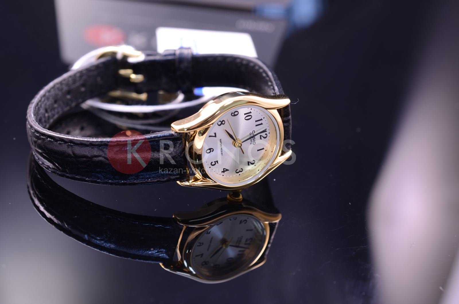 Яркий, переливающийся на свету золотой корпус данной модели сделан из латуни. Его гладкие края красиво обрамляют круглый циферблат золотистого цвета. Для удобства прочтения арабские цифры выдержаны в черном цвете, и поэтому моментальное определение времени не составит труда. Удобный, черный ремень сделан из кожи и привлекательно контрастирует вместе с корпусом. Классическая, и одновременно прочная модель наручных часов от Casio послужит своей обладательнице долгие годы.