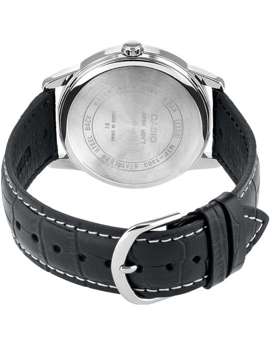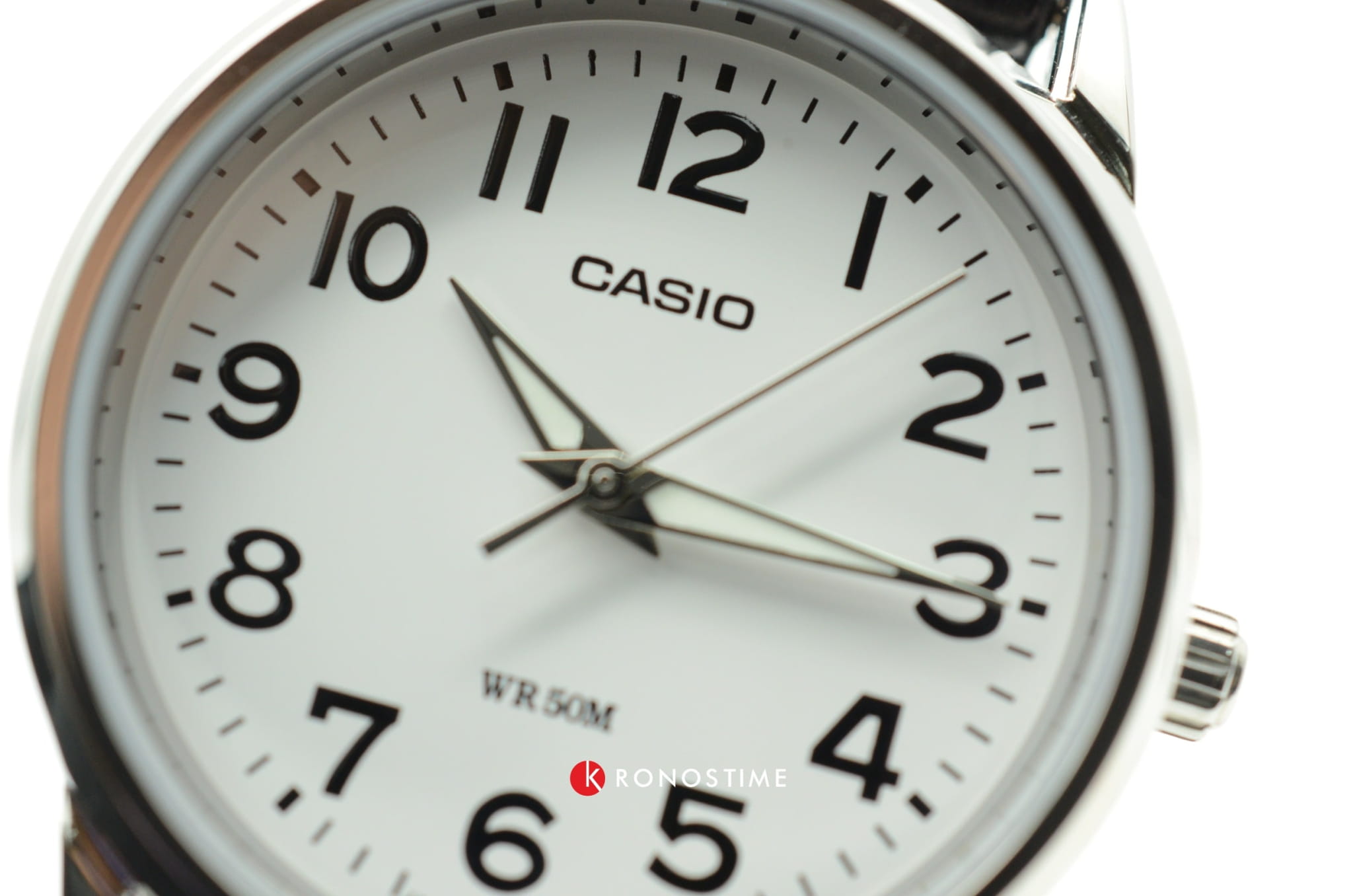 Наручные часы от Casio имеют скромный, и одновременно элегантный дизайн, что делает их универсальными и актуальными долгие годы. Серебристый, аккуратный корпус сделан из гипоаллергенной латуни. Черный браслет из натуральной, высококачественной кожи представляет собой прочную и удобную деталь. На белом циферблате расположены отчетливые временные отметки в виде арабских цифр. Тип механизма - кварцевый. Срок службы батарейки составляет 3 года. Водонепроницаемость равна 5 Барам.