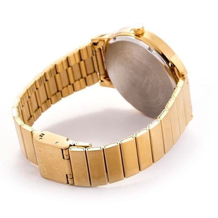 Японские женские кварцевые часы с минеральным стекломМинеральное стеклоМинеральное стекло представляет собой искусственно выращенный минерал кварца. Такое стекло отличается особой устойчивостью к повреждениям и царапинам. Уступает по некоторым качествам сапфировому стеклу. Casio Collection LTP-E118G-1A, кварцевый механизм с высокой точностью. Японские женские часы из коллекции LTP изящно смотрятся на запястье, они привлекают классическим исполнением. Минималистичная модель станет отличным решением для любого случая: на работу, переговоры с деловыми партнёрами, прогулку с друзьями или праздничный вечер. Корпус часов изготовлен из нержавеющей стали с IP-покрытиемIP-покрытиеМетод ионного напыления. Демонстрирует повышенную устойчивость к истиранию, окислению и химическим веществам. Под воздействием высокого давления и температуры около 1500°C молекулы металла надёжно соединяются с частицами корпуса часов.. Класс водозащиты: 50 метров, позволит защитить корпус от случайных брызг или капель дождя. Стальной браслет с IP-покрытиемIP-покрытиеМетод ионного напыления. Демонстрирует повышенную устойчивость к истиранию, окислению и химическим веществам. Под воздействием высокого давления и температуры около 1500°C молекулы металла надёжно соединяются с частицами корпуса часов. на раскладной застёжкеРаскладная застёжкаТакой тип застёжки используется только на браслетах из металла. Она никогда не раскрывается полностью, происходит разделение на 2 и более частей. Раскладывающая застёжка снизит вероятность потери часов к минимуму..