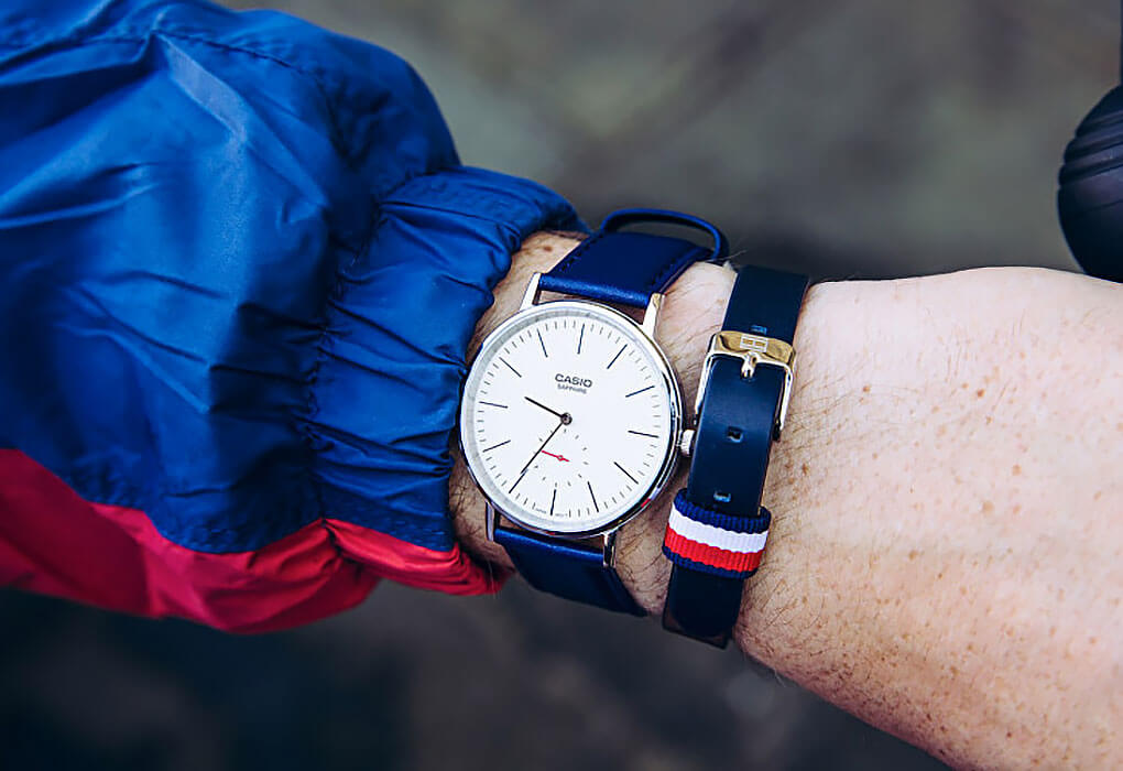 Корпус наручных часов от Casio сделан из высококачественной, нержавеющей стали. Кожаный, максимально комфортный ремень синего цвета будет изящно обрамлять запястье и придаст шарма модному образу. На круглом циферблате расположены аккуратные временные отметки в виде штрихов. Сапфировое, устойчивое к царапинам стекло обеспечивает защиту часов. Тип механизма - кварцевый. Срок службы батарейки составляет 3 года. Вес часов равен 40 граммам.