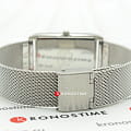 Серебристые, стильные наручные часы выдержаны в стиле винтаж. Браслет миланского плетения будет изящно обрамлять запястье и надежно закрепляется с помощью регулируемого крепления. В прямоугольный корпус из нержавеющей стали вставлено защитное минеральное стекло. На циферблате расположены отчетливые временные отметки в виде штрихов. Тип механизма - кварцевый. Срок службы батарейки составляет 3 года.