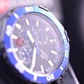 - Указатели даты и дня недели дополнительными стрелками на отметке «12» и «6 часов». В дизайне корпуса сочетаются современный спортивный стиль, элементы оформления часов для подводных погружений, использованы различные цветовые решения.