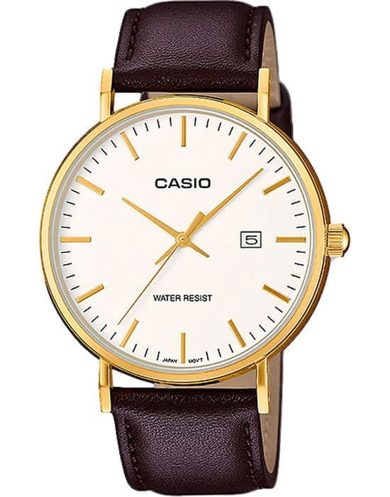 Классические японские часы для мужчин, которые ценят практичность. Корпус - Сталь; Стекло - Минеральное; Водозащита - 30 м. (WR 30); Материал ремешка - Кожа; Цвет ремешка - Коричневый;