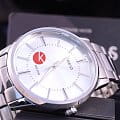 Циферблат в минималистичном исполнении дополнен контрастными метками и стрелками, это обеспечивает улучшение читаемости данных. Аксессуар имеет люминесцентную подсветкуЛюминесцентное покрытиеПозволяет считывать показания времени в темноте. Производители наносят на стрелки, часовые индексы, безель или поверхность циферблата светонакопительный состав, дающий холодное свечение., что позволяет пользоваться часами в темноте. Браслет из стали 316L комфортно ощущается на запястье. Японский кварцевый механизм получает энергию от батарейки, рассчитанной на 3 года службы. Минеральное стекло устойчиво к царапинам.