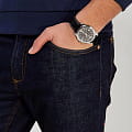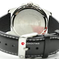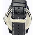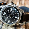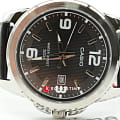 Тёмный циферблат с серебристыми часовыми метками и стрелками позволяет использовать часы в сочетании с одеждой любого цвета. Корпус из гипоаллергенной латуни отличается лёгкостью, чёрный ремешок из натуральной кожи надёжно обхватывает запястье. Срок службы батарейки для питания кварцевого механизма - 3 года. Люминесцентная подсветкаЛюминесцентное покрытиеПозволяет считывать показания времени в темноте. Производители наносят на стрелки, часовые индексы, безель или поверхность циферблата светонакопительный состав, дающий холодное свечение.. Сохранение водонепроницаемости при давлении до 5 бар. Минеральное стекло. Габариты: 44,9 x 50 x 9,4 мм.