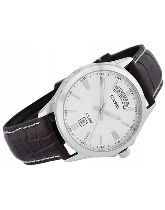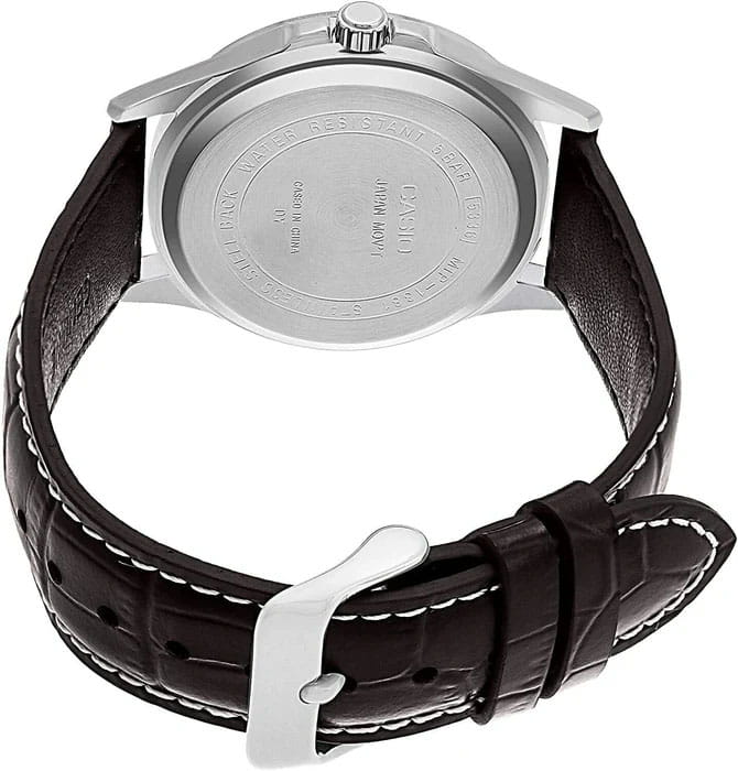Мужские японские наручные часы из линейки Casio MTP Collection умело сочетают в себе винтажные элементы и спортивный стиль. Минеральное стеклоМинеральное стеклоМинеральное стекло представляет собой искусственно выращенный минерал кварца. Такое стекло отличается особой устойчивостью к повреждениям и царапинам. Уступает по некоторым качествам сапфировому стеклу. устойчивое к мелким механическим повреждениям. Высокотехнологичный аксессуар обладает строгим стилем и традиционной формой циферблата. Сдержанные, классические цвета и плавные линии позволяют носить часы, не снимая, их универсальность идеально подходит для делового костюма, повседневной одежды или образа для вечернего выхода. Для корпуса использована нержавеющая сталь 316L, за счёт чего достигается повышенная устойчивость к повреждениям и ударам. Надежные часы которые прослужат много лет. Модель комплектуется надёжным механизмом, точность хода которого составляет +/- 20 сек/мес. Кожаный ремешок на стандартной застёжке. Окошки дня недели и даты находятся в положении 12 часов и 6 часов соответственно. Заводная головка с защитой.