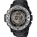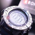 Часы, созданные для любителей активного отдыха. Питание от солнечной энергии Tough Solar - солнечные батарейки большой мощности, индикатор заряда батареи. Функция автоматического сохранения энергии. Модуль часов рассчитан на работу при низких температурах до -10°С/14°F. Прием радиосигнала (Европа, США, Япония, Китай). Технология Triple Sensor позволяет точно и легко определять сторону света, температуру и атмосферное давление. Термометр от -10° до +60°С с точностью 0,1°C. Барометр - измерение атмосферного давления от 260 до 1100 гПа (от 195 до 825 мм рт. ст.). Встроенный цифровой компас. Диапазон измерения от 0° до 359° с точностью 1°. Высотомер - встроенный датчик барометрического давления. Данные о восходе/закате солнца. После введения географического местоположения, на экране будет отображаться восход и закат солнца для любой установленной даты. Секундомер с точностью показаний 1/100с Сплит-хронограф. Таймер обратного отсчета от 1мин до 1ч. Функция перемещения стрелок. Функция отключения/включения звука. Будильник (5 установок). Минеральное стекло устойчиво к появлению царапин. Водонепроницаемость (10 Бар).