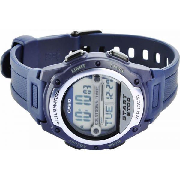 Кварцевые мужские часы. Оснащены: секундомером, отображением времени в двух часовых поясах, таймером, календарем, будильником, подсветкой. Корпус - Пластиковый; Стекло - Пластик; Водозащита - 100 м. (WR 100); Материал ремешка - Пластиковый; Цвет ремешка - Синий; Цвет циферблата - Lcd.
