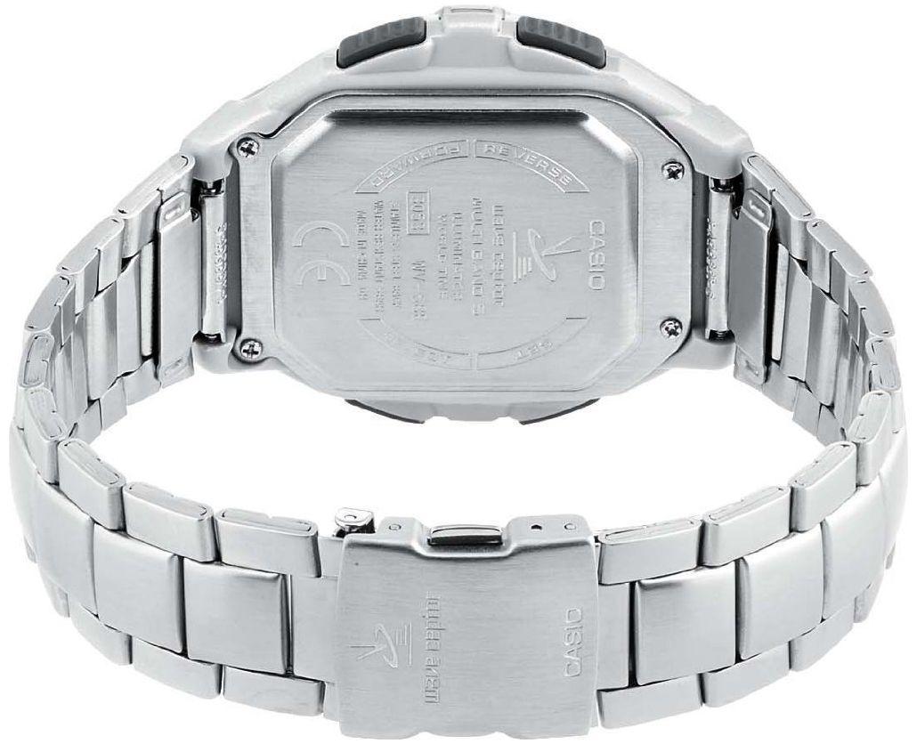 Высокотехнологичные японские наручные мужские часы. Круглый корпус часов и браслет выполнены из нержавеющей стали и пластика. . Водонепроницаемость 5 ATM.  Часы оснащены такими функциями как секундомер, таймер обратного отсчета, будильник, мировое время, второй часовой пояс, прием радиосигнала. Минеральное стекло устойчиво к царапинам.