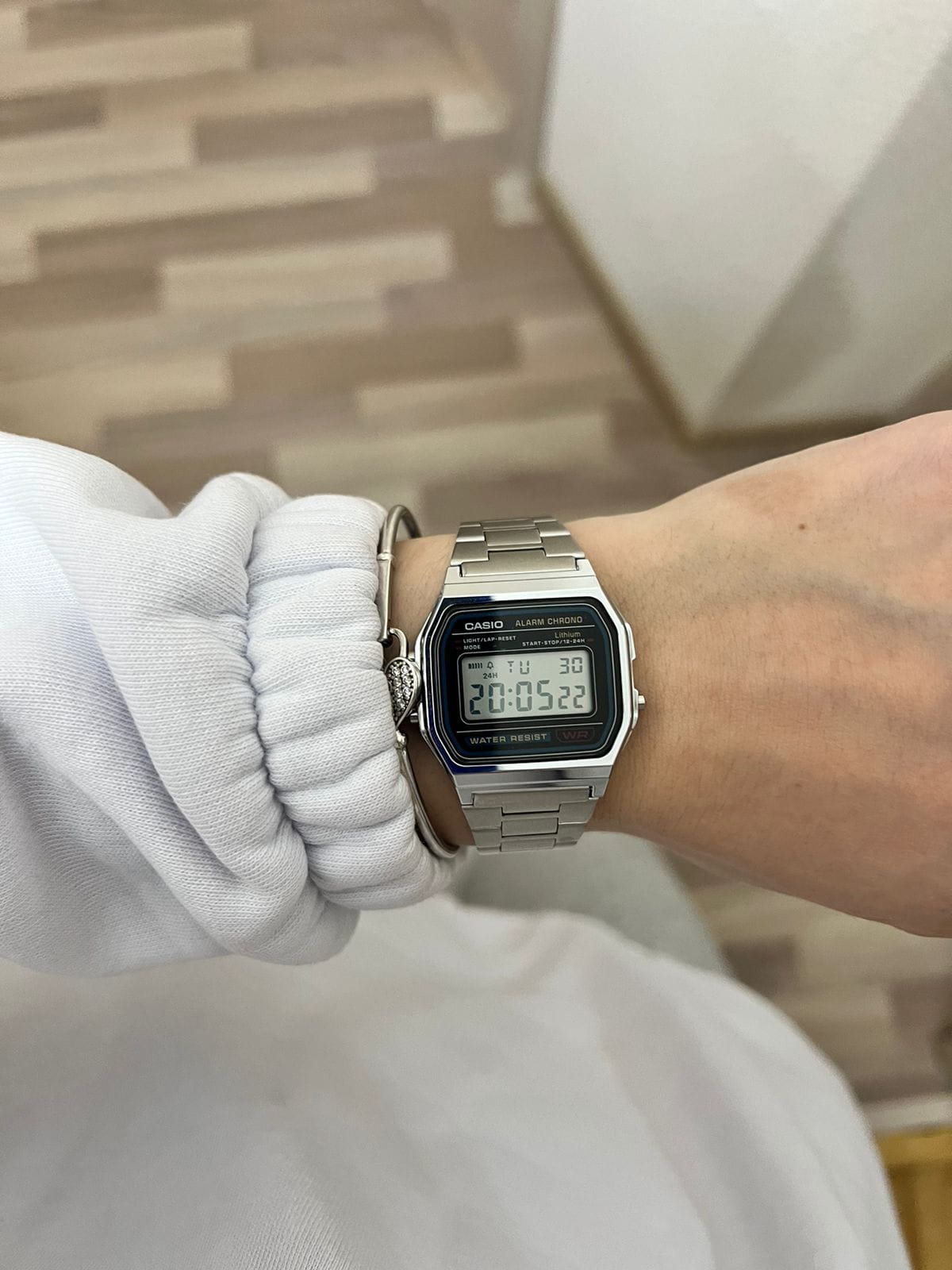 Модель A158WA-1DF из коллекции Vintage сочетает в себе классический дизайн и практичные функции. Корпус выполнен из пластика, а браслет из нержавеющей стали обеспечивает прочность и элегантный внешний вид.