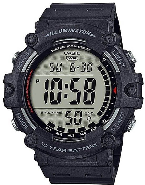 Спортивные японские мужские часы Casio Collection AE-1500WH-1AVEF, кварцевый механизм с высокой точностью. Класс водозащиты: 100 метров, позволит плавать, нырять и заниматься другими водными видами спорта. Корпус часов изготовлен из пластика черного цвета.