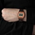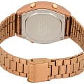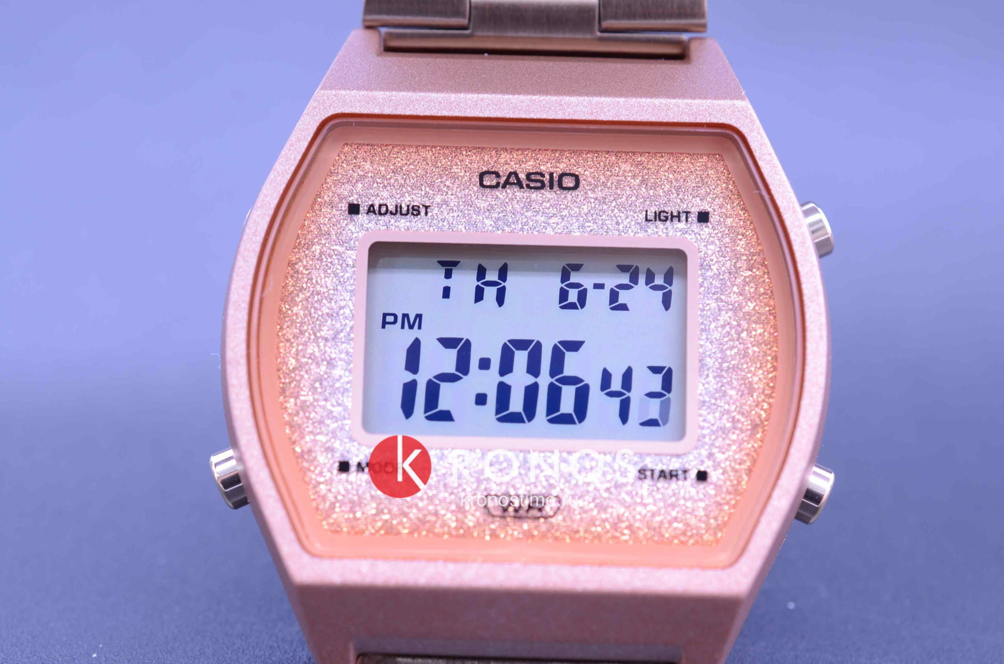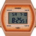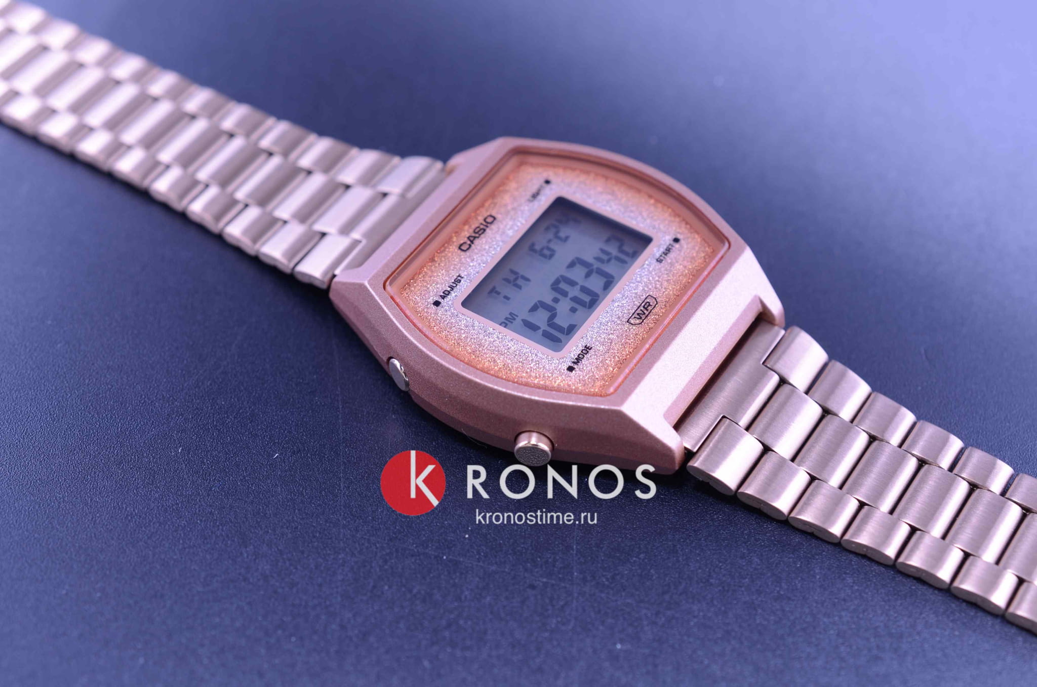 Первые модели от Casio выпускались в квадратном корпусе, который успешно реализован в аксессуаре B640WCG-5EF. Он стал не только стильным элементом часов, но и напоминанием о прошлых успехах бренда. Привлекательно смотрится цифровой дисплей с блестящей окантовкой, оттенок подобран в тон браслету. Он выполнен из нержавеющей стали 316L с IP-покрытиемIP-покрытиеМетод ионного напыления. Демонстрирует повышенную устойчивость к истиранию, окислению и химическим веществам. Под воздействием высокого давления и температуры около 1500°C молекулы металла надёжно соединяются с частицами корпуса часов., дополнительно защищающим от царапин. Яркая светодиодная подсветкаСветодиодная подсветкаСветодиодная или LED-подсветка обеспечивает появление яркого холодного свечения за счёт LED-элементов - маленьких лампочек. Они потребляют минимальное количество энергии, чаще всего можно встретить 1 светодиод, в нижней части циферблата. позволяет использовать часы в темноте, LED-индикатор мигает при окончании работы секундомераСекундомерСекундоме́р — прибор, способный измерять интервалы времени с точностью до долей секунды. или таймераТаймерОтсчитывает секунды в обратном направлении в заданном интервале времени.. Работу модели обеспечивает японский кварцевый механизм, батарейка которого рассчитана на 3 года службы. Циферблат защищён акриловым стеклом, устойчивым к повреждениям. Наручные ретро-часы имеют водостойкость 50 метров и без проблем выдержат мойку машины, душ и дождь. Стальной браслет на раскладной застёжкеРаскладная застёжкаТакой тип застёжки используется только на браслетах из металла. Она никогда не раскрывается полностью, происходит разделение на 2 и более частей. Раскладывающая застёжка снизит вероятность потери часов к минимуму. с IP-покрытиемIP-покрытиеМетод ионного напыления. Демонстрирует повышенную устойчивость к истиранию, окислению и химическим веществам. Под воздействием высокого давления и температуры около 1500°C молекулы металла надёжно соединяются с частицами корпуса часов.. СекундомерСекундомерСекундоме́р — прибор, способный измерять интервалы времени с точностью до долей секунды. с двумя точностями показаний: 1/100с (до 1ч) и 1с (после 1ч) и временем измерения 24ч. Сплит-хронографСплит-хронографИспользуется для измерения продолжительности нескольких временных отрезков, начинающихся одновременно, а заканчивающихся в разное время.. ТаймерТаймерОтсчитывает секунды в обратном направлении в заданном интервале времени. обратного отсчета от 1мин до 24ч с автоповтором. Типы сигналов: ежедневный, ежемесячный, каждый день определенного месяца, на определенную дату. Световая индикация сигнала. Габариты: 38,9 x 35 x 9,9 мм.
