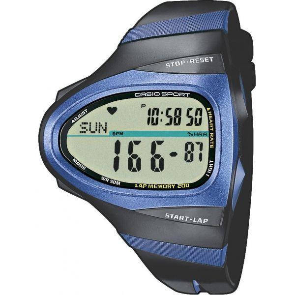 Кварцевые многофункциональные мужские часы нестандартной вытянутой формы с цифровым жидкокристаллическим экраном. Пластиковый темно-синий корпус удерживается на руке браслетом из пластика черно-синего цвета. Часы Casio CHR-100-1 оснащены функцией подсчета и отображения пульса, измерителем израсходованных калорий и беспроводной передачей данных.