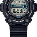 Спортивные японские мужские часы-хронографХронографФункция позволяет измерять отрезки времени с особой точностью: часы, минуты, секунды. Верным признаком хронографа является наличие на циферблате 3 дополнительных окошек-счётчиков. Casio Collection WS-1300H-1A, кварцевый механизм с высокой точностью, органическое стекло. Корпус часов изготовлен из плачтика. Светодиодная подсветкаСветодиодная подсветкаСветодиодная или LED-подсветка обеспечивает появление яркого холодного свечения за счёт LED-элементов - маленьких лампочек. Они потребляют минимальное количество энергии, чаще всего можно встретить 1 светодиод, в нижней части циферблата. освещает весь циферблат. Цвет подсветки: оранжевый. Отображение возраста Луны на конкретную дату и графика фаз Луны. 12-ти и 24-х часовой формат времени. СекундомерСекундомерСекундоме́р — прибор, способный измерять интервалы времени с точностью до долей секунды. с точностью показаний 1/100с и временем измерения 1ч. Сплит-хронографСплит-хронографИспользуется для измерения продолжительности нескольких временных отрезков, начинающихся одновременно, а заканчивающихся в разное время.. Батарейка рассчитана на 10 лет. ТаймерТаймерОтсчитывает секунды в обратном направлении в заданном интервале времени. обратного отсчета от 1мин до 24ч с автоповтором. График приливов и отливов. Функция включения/отключения звука. Типы сигналов: ежедневный, ежемесячный, каждый день определенного месяца, на определенную дату. Класс водозащиты: 100 метров, позволит плавать, нырять и заниматься другими водными видами спорта. Ремешок из полимерного материала на стандартной застежке.