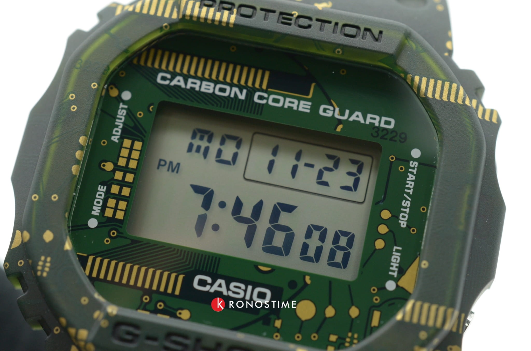 Брендовый джишок наценен на ценителей олдскульного квадратного корпуса, прототипом для которого стали первые модели Casio. Спортивный дизайн выражает брутальный характер. Наручные часы в матовом зелёном исполнении отображают время в цифровом формате, инверсионный дисплей имеет зеленое обрамление. Противоударный корпусУдаропрочный корпусМеханизм заключён в корпус, выполненный из современных материалов, устойчивых к ударам, механическим повреждениям и падению с высоты: инновационный пластик, карбон, нержавеющая сталь, титан. с углеродными волокнами надёжно защищает японский кварцевый механизм от повреждений, последствий падения. Питание идёт от батарейки, рассчитанной на 2 года службы. Закаленное минеральное стекло. Комфортный полимерный ремешок. Электролюминесцентная подсветкаЭлектролюминесцентная подсветкаЭлектролюминесцентная панель устанавливается под ЖК-экраном часов, при нажатии кнопки электричество преобразуется в свет за счёт подачи напряжения на атомы фосфора, такой тип подсветки позволяет освещать весь циферблат.. Водостойкость 20 бар. Секундомер, автокалендарь, мировое времяМировое время Полезное часовое усложнение, отображающее время в основных городах и известных областях по всему миру, оно связано с часовыми поясами, удобно для путешественников и бизнесменов. , многофункциональный будильник, хронографХронографФункция позволяет измерять отрезки времени с особой точностью: часы, минуты, секунды. Верным признаком хронографа является наличие на циферблате 3 дополнительных окошек-счётчиков., таймер. Габариты: 48,9 x 43,8 x 13,5 мм.
