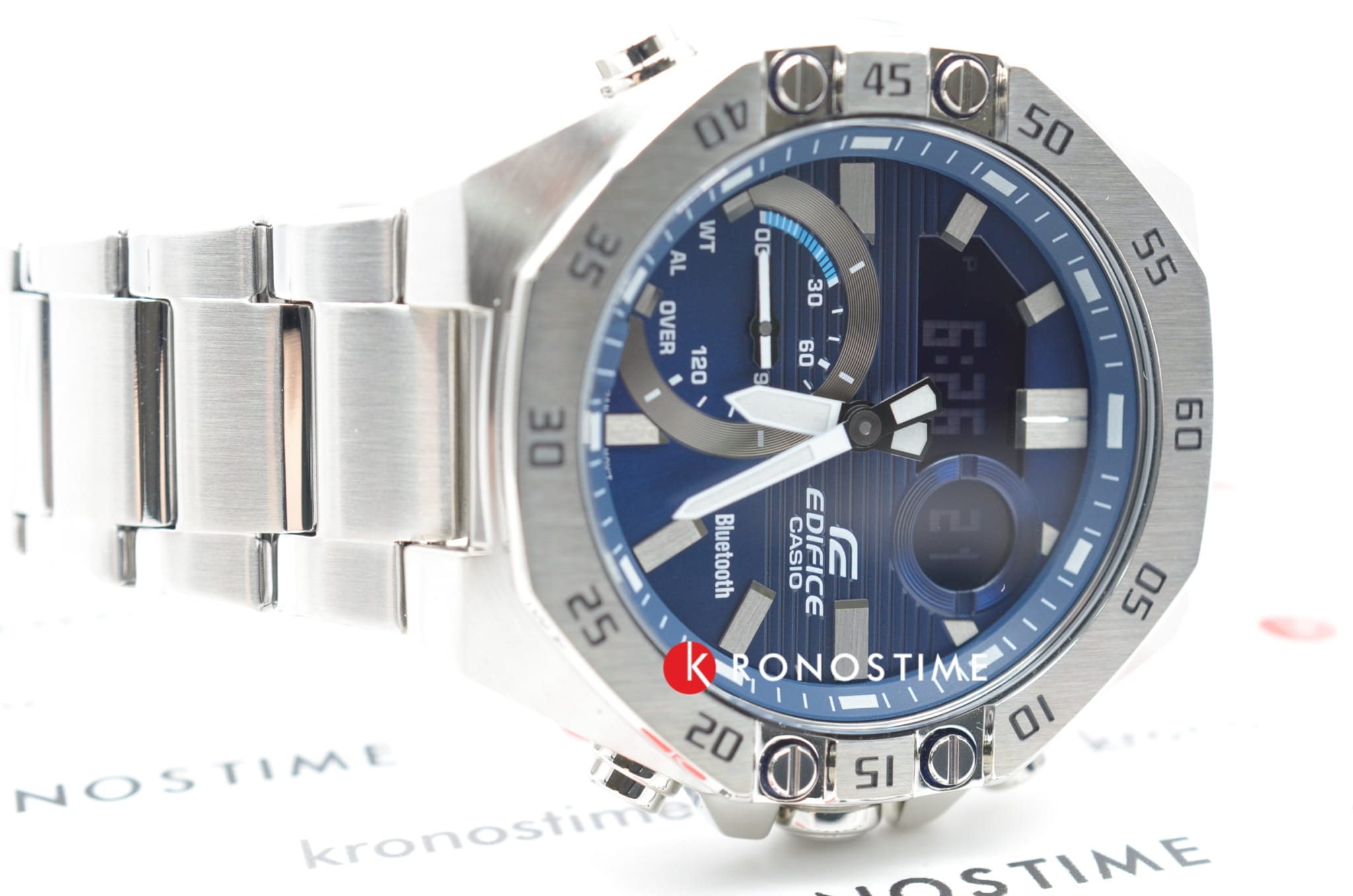 Casio Edifice ECB-10D-2ADF – мужские часы, сочетающие спортивный дизайн и современные технологии. Корпус размером 51×48,5 мм и толщиной 12,5 мм выполнен из нержавеющей стали, обеспечивающей прочность и устойчивость к коррозии. Синий циферблат с аналогово-цифровым отображением времени защищён минеральным стекломМинеральное стеклоМинеральное стекло представляет собой искусственно выращенный минерал кварца. Такое стекло отличается особой устойчивостью к повреждениям и царапинам. Уступает по некоторым качествам сапфировому стеклу., устойчивым к царапинам.