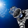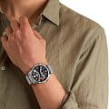Достаточно внушительный чёрный циферблат имеет красные акценты, оригинально смотрится необычное расположение счётчиков. Многофункциональная модель пригодится на любой случай жизни, ведь она оснащена Bluetooth 4.0BluetoothСовременная технология, позволяющая синхронизировать часы с телефоном и переносить данные. Часы с Bluetooth расширяют возможности вашего смартфона и делают его использование ещё более удобным., хронографомХронографФункция позволяет измерять отрезки времени с особой точностью: часы, минуты, секунды. Верным признаком хронографа является наличие на циферблате 3 дополнительных окошек-счётчиков., секундомером, тахиметромТахиметрРазмеченная шкала, располагается на ободке или безеле часов. Тахиметр позволяет рассчитать скорость на определённом участке пути, расстояние измеряется в километрах или милях., таймером, будильником, календарём, есть мировое времяМировое время Полезное часовое усложнение, отображающее время в основных городах и известных областях по всему миру, оно связано с часовыми поясами, удобно для путешественников и бизнесменов. и функция поиска телефона. Питание поступает от солнечной энергии - . Водонепроницаемость до 10 бар. Корпус, браслет, безельБезельВнешний ободок, закрепляющий стекло. В спортивных часах так называется поворотное кольцо с делениями на циферблате, выполняет роль таймера – замеряет отрезки времени на шкале. Неподвижный безель – элемент декора. Однонаправленно вращающийся безель на дайверских часах позволяет фиксировать моменты погружения и выныривания на поверхность. из хирургической стали 316L. Минеральное стекло. Двойная светодиодная подсветкаСветодиодная подсветкаСветодиодная или LED-подсветка обеспечивает появление яркого холодного свечения за счёт LED-элементов - маленьких лампочек. Они потребляют минимальное количество энергии, чаще всего можно встретить 1 светодиод, в нижней части циферблата.. Габариты: 50 x 46 x 9,8 мм.