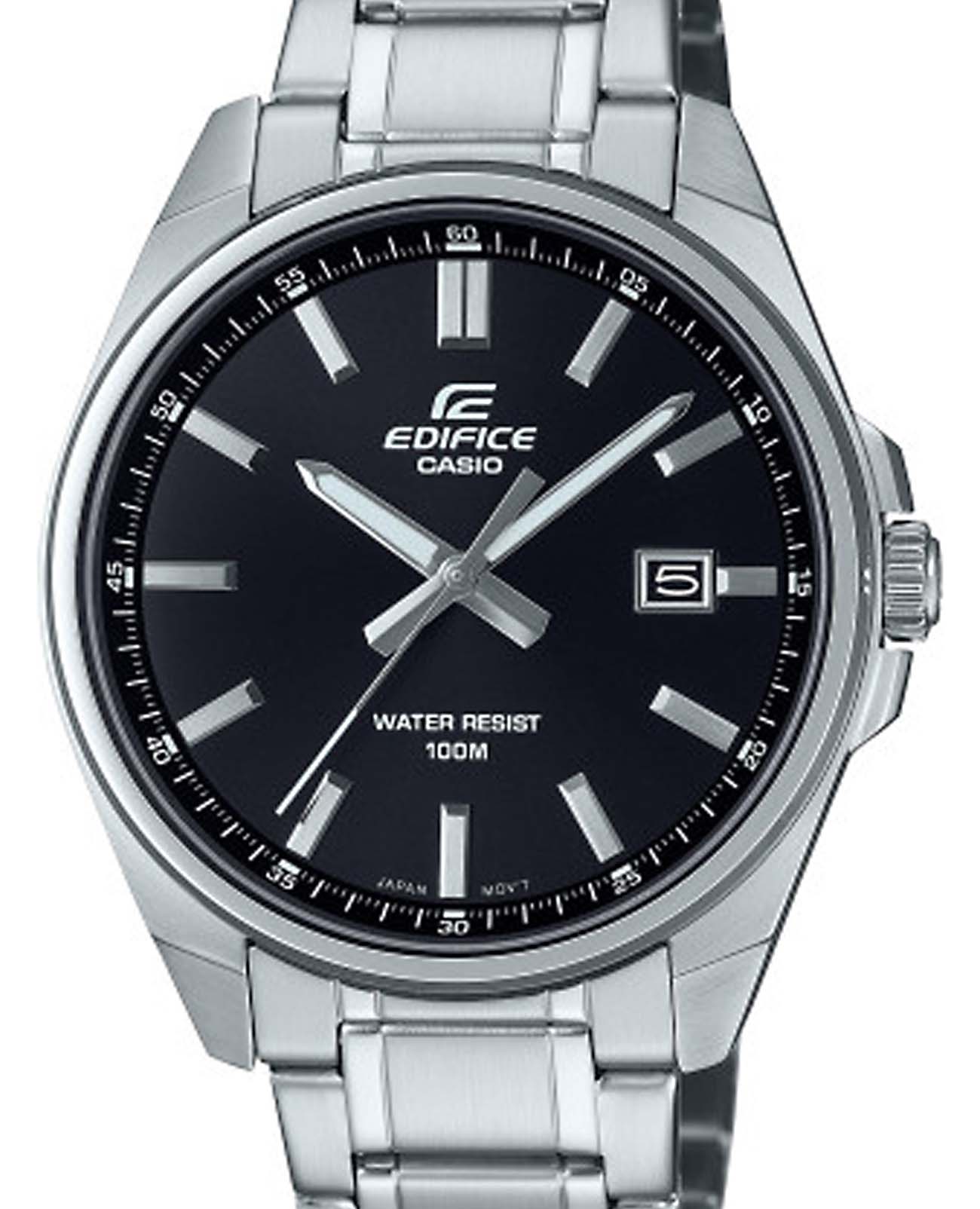 Японские мужские кварцевые часы Casio Edifice EFV-150D-1AVUDF, кварцевый механизм с высокой точностью. Минеральное стеклоМинеральное стеклоМинеральное стекло представляет собой искусственно выращенный минерал кварца. Такое стекло отличается особой устойчивостью к повреждениям и царапинам. Уступает по некоторым качествам сапфировому стеклу. устойчивое к мелким механическим повреждениям. Корпус часов изготовлен из нержавеющей стали. Подсветка NeobriteПодсветка NeobriteИспользование светонакопительных составов на основе сульфида цинка или алюмината стронция, яркий свет можно наблюдать на протяжении 6-10 часов после «зарядки» часов около источника света. обеспечивает длительное послесвечение в темноте даже после кратковременного нахождения на свету. Циферблат с метками в виде штрихов. Окошко даты в положении 3 часов. Класс водозащиты: 100 метров, позволит плавать, нырять и заниматься другими водными видами спорта. Стальной браслет на раскладной застёжкеРаскладная застёжкаТакой тип застёжки используется только на браслетах из металла. Она никогда не раскрывается полностью, происходит разделение на 2 и более частей. Раскладывающая застёжка снизит вероятность потери часов к минимуму..