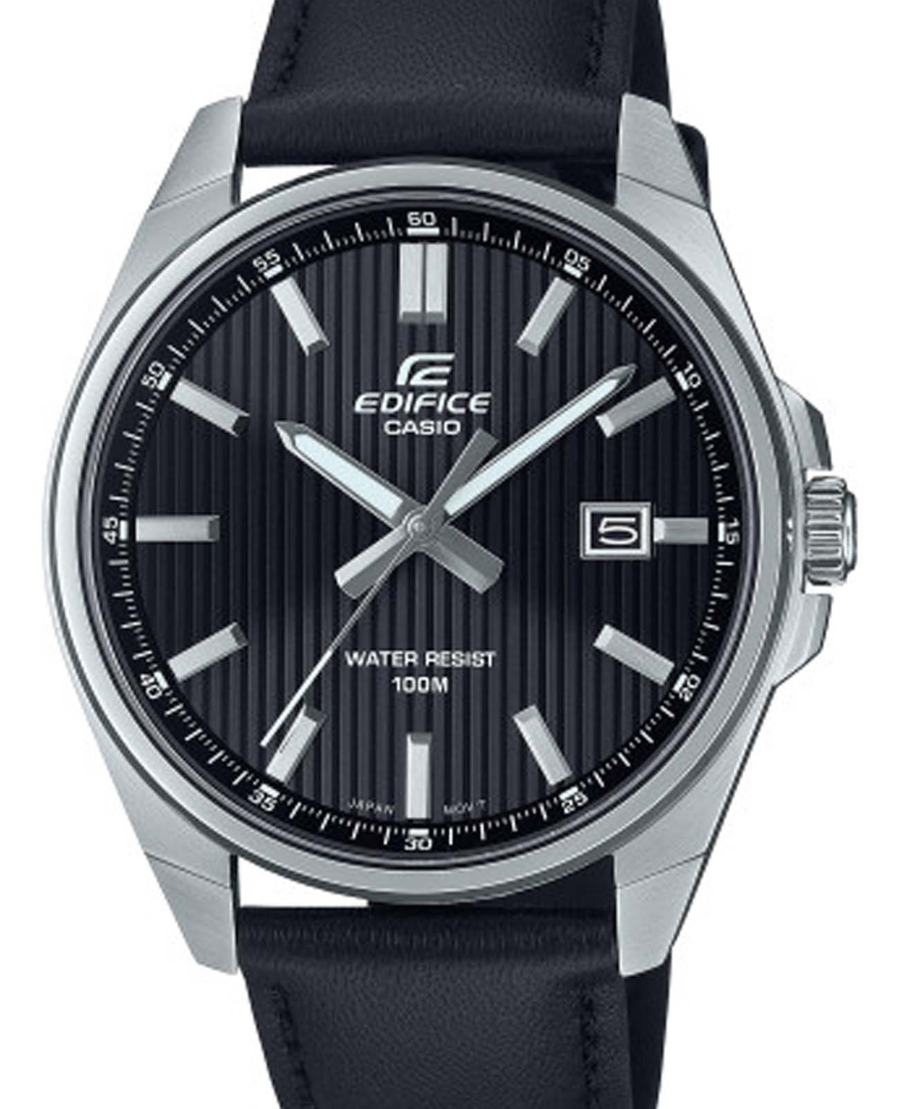 Японские мужские кварцевые часы Casio Edifice EFV-150L-1AVUDF, кварцевый механизм с высокой точностью. Минеральное стеклоМинеральное стеклоМинеральное стекло представляет собой искусственно выращенный минерал кварца. Такое стекло отличается особой устойчивостью к повреждениям и царапинам. Уступает по некоторым качествам сапфировому стеклу. устойчивое к мелким механическим повреждениям. Корпус часов изготовлен из нержавеющей стали. Подсветка NeobriteПодсветка NeobriteИспользование светонакопительных составов на основе сульфида цинка или алюмината стронция, яркий свет можно наблюдать на протяжении 6-10 часов после «зарядки» часов около источника света. обеспечивает длительное послесвечение в темноте даже после кратковременного нахождения на свету. Циферблат с метками в виде штрихов. Окошко даты в положении 3 часов. Класс водозащиты: 100 метров, позволит плавать, нырять и заниматься другими водными видами спорта. Кожаный ремешок на стандартной застежке.