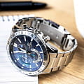 Японские мужские часы-хронографХронографФункция позволяет измерять отрезки времени с особой точностью: часы, минуты, секунды. Верным признаком хронографа является наличие на циферблате 3 дополнительных окошек-счётчиков. Casio Edifice EFV-620D-1A2V. Минеральное стеклоМинеральное стеклоМинеральное стекло представляет собой искусственно выращенный минерал кварца. Такое стекло отличается особой устойчивостью к повреждениям и царапинам. Уступает по некоторым качествам сапфировому стеклу. устойчивое к появлению царапин, обладающее высокой прозрачностью. Копрус часов изготовлен из нержавеющей стали. БезельБезельВнешний ободок, закрепляющий стекло. В спортивных часах так называется поворотное кольцо с делениями на циферблате, выполняет роль таймера – замеряет отрезки времени на шкале. Неподвижный безель – элемент декора. Однонаправленно вращающийся безель на дайверских часах позволяет фиксировать моменты погружения и выныривания на поверхность. из стали с IP-покрытиемIP-покрытиеМетод ионного напыления. Демонстрирует повышенную устойчивость к истиранию, окислению и химическим веществам. Под воздействием высокого давления и температуры около 1500°C молекулы металла надёжно соединяются с частицами корпуса часов.. Светодиодная автоподсветка NeobriteПодсветка NeobriteИспользование светонакопительных составов на основе сульфида цинка или алюмината стронция, яркий свет можно наблюдать на протяжении 6-10 часов после «зарядки» часов около источника света. - при повороте часов в сторону лица подсветка дисплея осуществляется автоматически. Настраиваемое послесвечение 1,5 или 3сек. Записная книжка на 30 ячеек памяти для записи имен и телефонных номеров, каждая запись может включать в себя текст из 8 букв и 16 цифр. СекундомерСекундомерСекундоме́р — прибор, способный измерять интервалы времени с точностью до долей секунды. с точностью измерения 1/100 секунды и измерением до 23 часов 59 минут 59,99 cек. ТаймерТаймерОтсчитывает секунды в обратном направлении в заданном интервале времени. обратного отсчета (диапазон времени 24 часа), автоматический календарь, 12/24 отображение времени. Мировое времяМировое время Полезное часовое усложнение, отображающее время в основных городах и известных областях по всему миру, оно связано с часовыми поясами, удобно для путешественников и бизнесменов. – 30 городов (29 часовых поясов). 5 будильниковБудильникБуди́льник — часы, в заданный момент времени подающие звуковой, световой и/или в редких случаях другой сигнал., один с функцией Snooze, ежечасный сигнал. Класс водозащиты: 100 метров, позволит плавать, нырять и заниматься другими водными видами спорта. Стальной браслет на раскладной застёжкеРаскладная застёжкаТакой тип застёжки используется только на браслетах из металла. Она никогда не раскрывается полностью, происходит разделение на 2 и более частей. Раскладывающая застёжка снизит вероятность потери часов к минимуму..