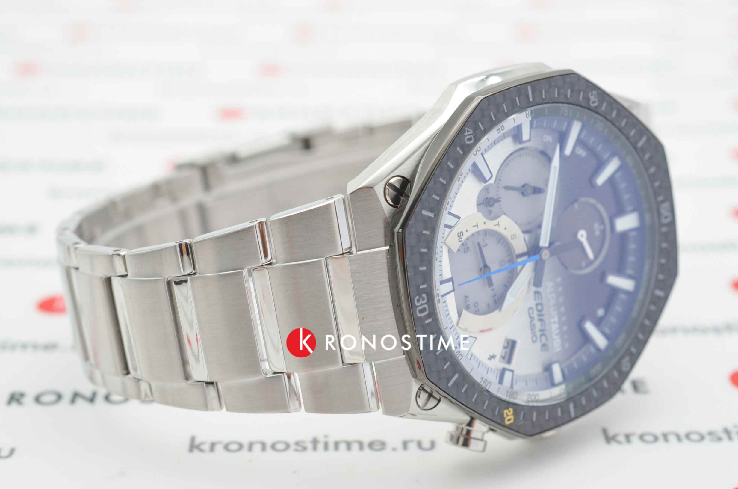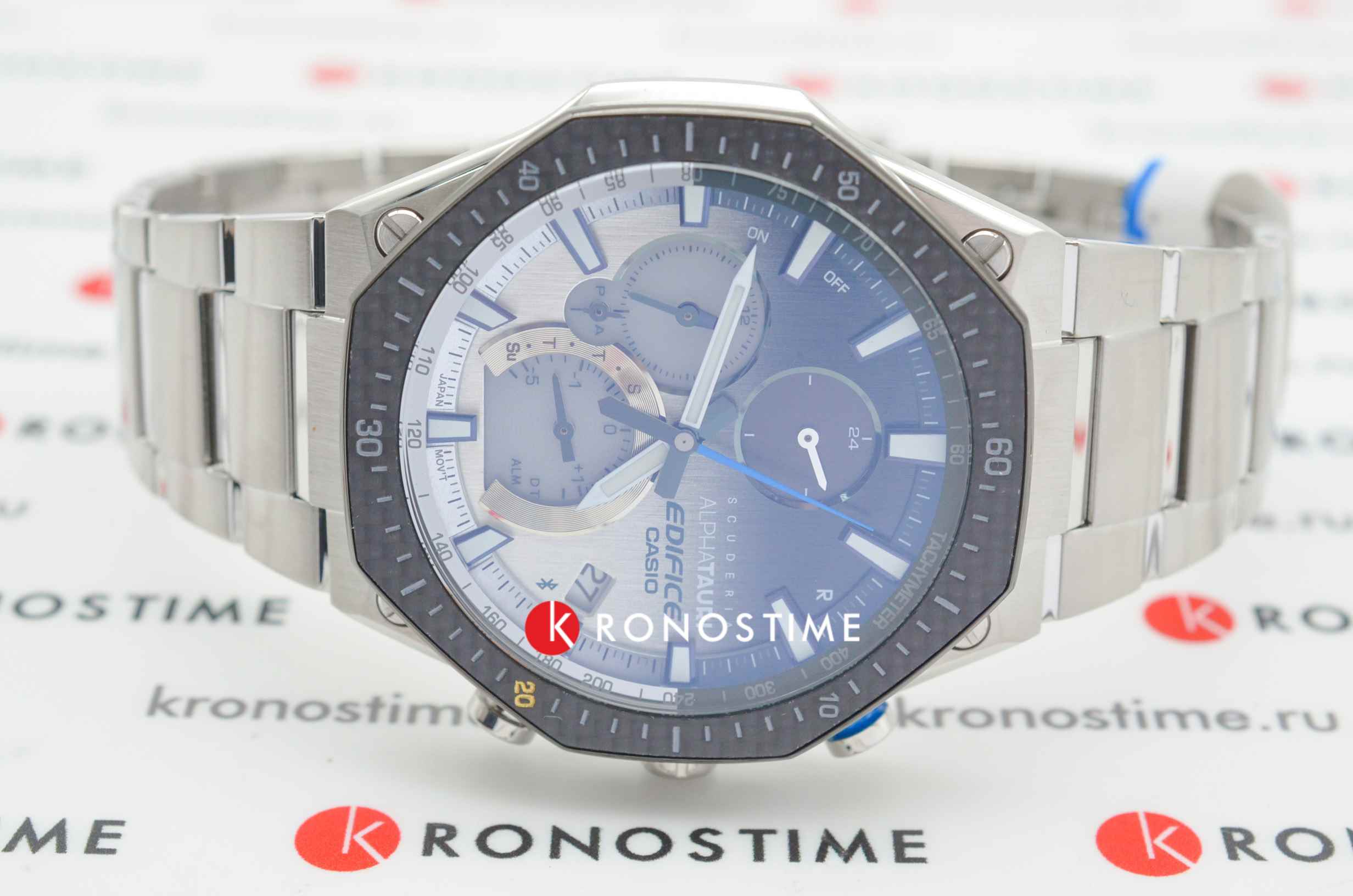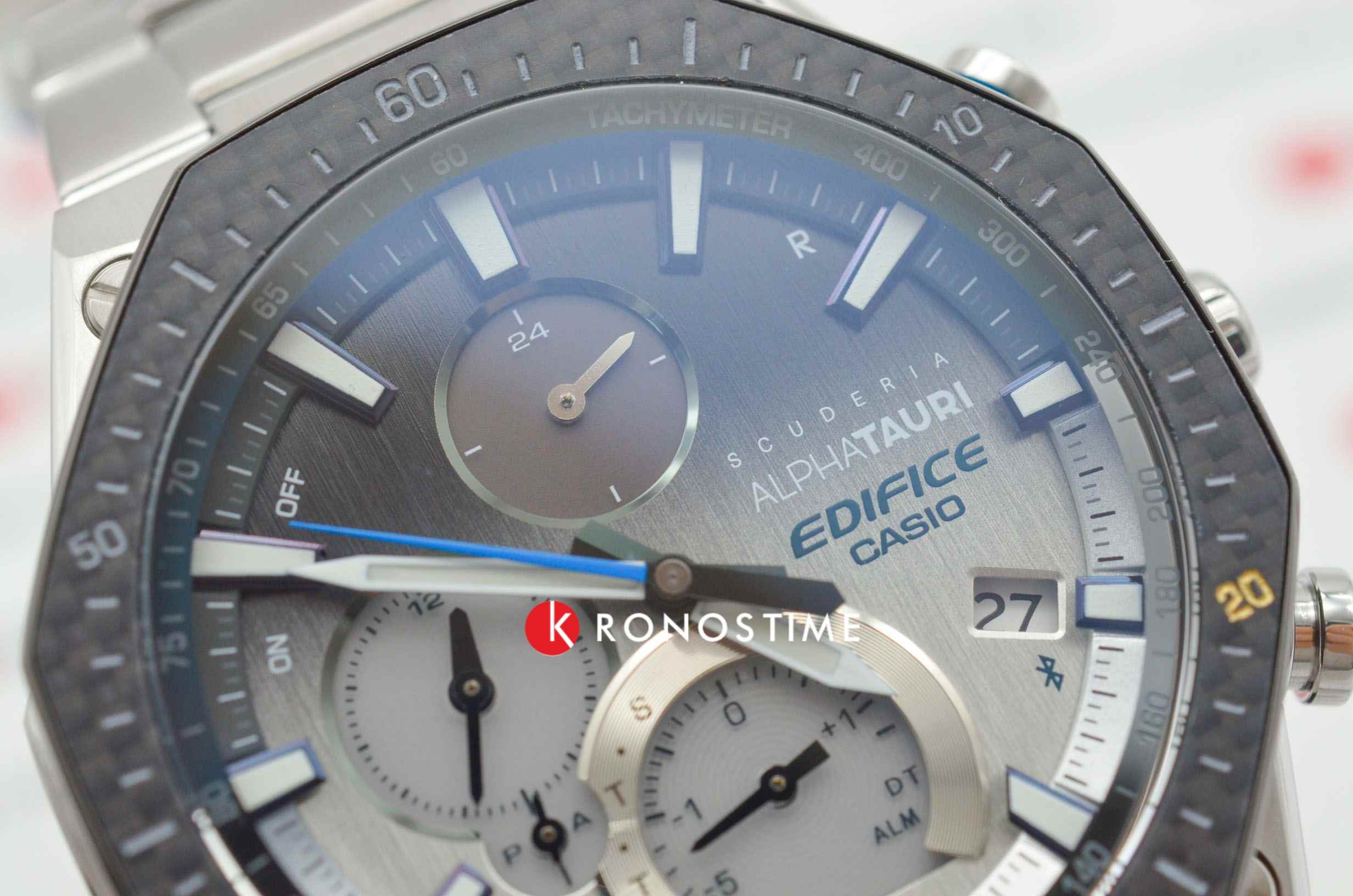 Карбоновый безель гармонируют с серым фоном. Часы выполнены в спортивном стиле, ссылаясь на дизайн эксклюзивных спорткаров и автомобильных деталей. Они основаны на технологии , оснащены расширенными функциональными возможностями: BluetoothBluetoothСовременная технология, позволяющая синхронизировать часы с телефоном и переносить данные. Часы с Bluetooth расширяют возможности вашего смартфона и делают его использование ещё более удобным. нового поколения с низким потреблением энергии, автоматический календарь, хронографХронографФункция позволяет измерять отрезки времени с особой точностью: часы, минуты, секунды. Верным признаком хронографа является наличие на циферблате 3 дополнительных окошек-счётчиков., секундомер, индикатор последнего круга дистанции Last Lap Indicator, мировое время. Модель комплектуется надёжным браслетом из нержавеющей стали. Заводная головка с защитой. Ударопрочный корпусУдаропрочный корпусМеханизм заключён в корпус, выполненный из современных материалов, устойчивых к ударам, механическим повреждениям и падению с высоты: инновационный пластик, карбон, нержавеющая сталь, титан.. Сапфировое стекло с антибликовым покрытием. Водонепроницаемость WR 100. Подсветка NeobriteПодсветка NeobriteИспользование светонакопительных составов на основе сульфида цинка или алюмината стронция, яркий свет можно наблюдать на протяжении 6-10 часов после «зарядки» часов около источника света.. Габариты: 44,6 x 51,1 x 9,6 мм.