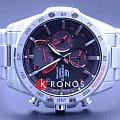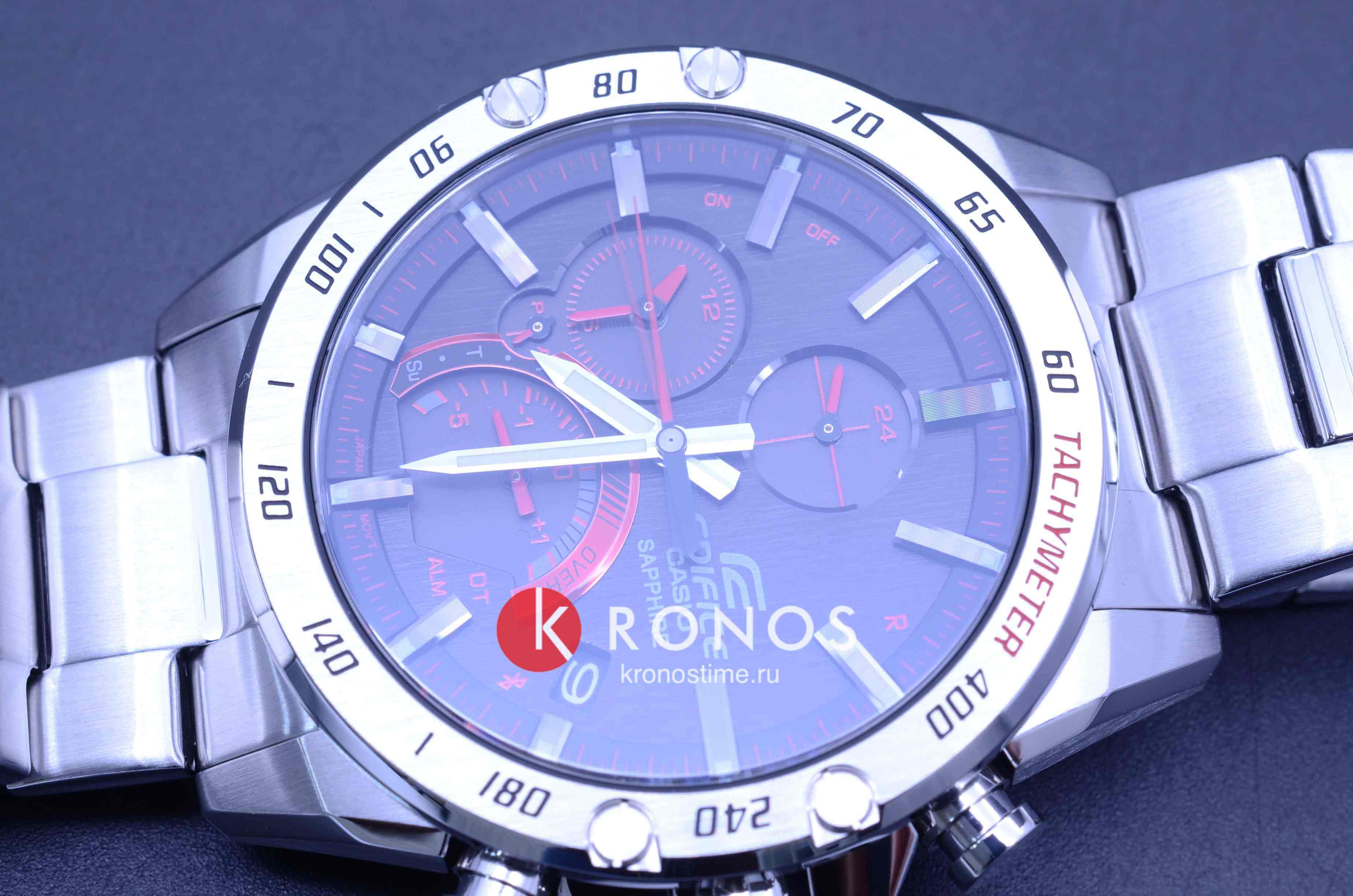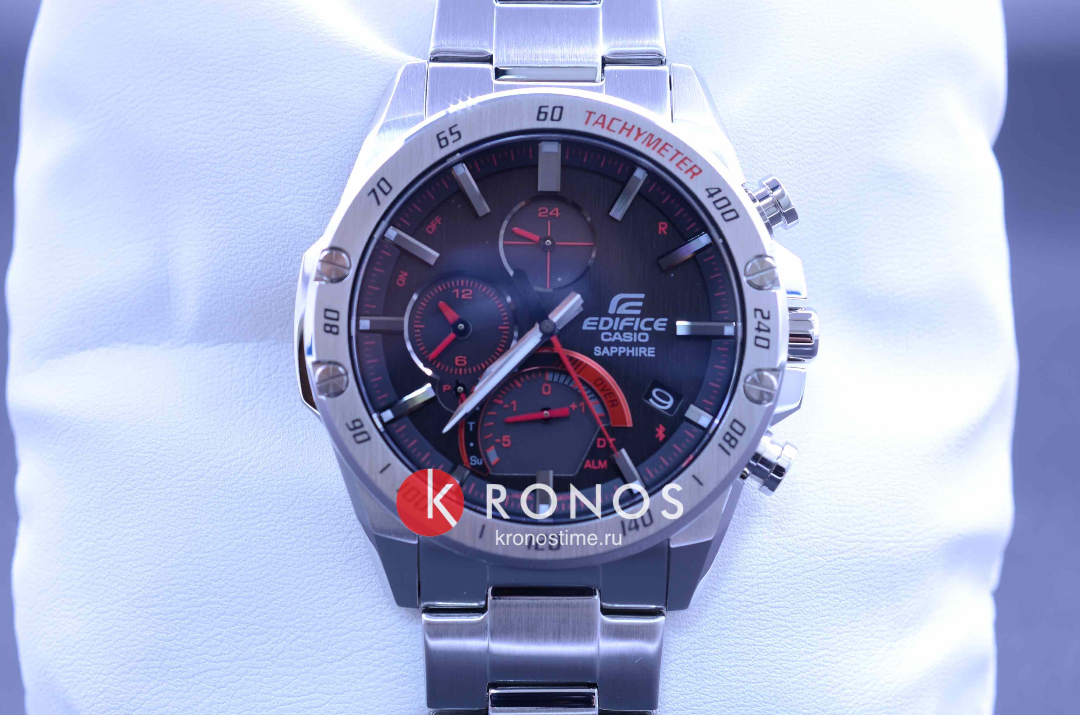 Стильная расцветка включает яркие красные акценты. Счётчик на позиции 6 часов имеет градиентную окантовку, что стало отсылкой к скорости и динамике. Аксессуар обладает ультратонким корпусом в 8,9 мм по сравнению с предшественниками серии EQB. Этого удалось добиться за счёт более плотного расположения деталей на модуле. Часы способны синхронизироваться со смартфоном для настроек точного времени и поиска телефона – технология BluetoothBluetoothСовременная технология, позволяющая синхронизировать часы с телефоном и переносить данные. Часы с Bluetooth расширяют возможности вашего смартфона и делают его использование ещё более удобным.. Питание японского кварцевого механизма обеспечивается за счёт солнечной батареи , следить за уровнем зарядки устройства можно благодаря специальному индикатору. Циферблат защищён сапфировым стеклом, устойчивым к появлению царапин. Стрелки имеют люминесцентное покрытиеЛюминесцентное покрытиеПозволяет считывать показания времени в темноте. Производители наносят на стрелки, часовые индексы, безель или поверхность циферблата светонакопительный состав, дающий холодное свечение.. Модель подходит для плавания, отличается водостойкостью до 10 бар и заводной головкой с защитой. Функции: хронографХронографФункция позволяет измерять отрезки времени с особой точностью: часы, минуты, секунды. Верным признаком хронографа является наличие на циферблате 3 дополнительных окошек-счётчиков., секундомер, тахиметрТахиметрРазмеченная шкала, располагается на ободке или безеле часов. Тахиметр позволяет рассчитать скорость на определённом участке пути, расстояние измеряется в километрах или милях., будильник, мировое времяМировое время Полезное часовое усложнение, отображающее время в основных городах и известных областях по всему миру, оно связано с часовыми поясами, удобно для путешественников и бизнесменов. , календарь. Есть индикатор последнего круга для любителей гонок. Габариты: 49,9 x 45,6 x 8,9 мм.