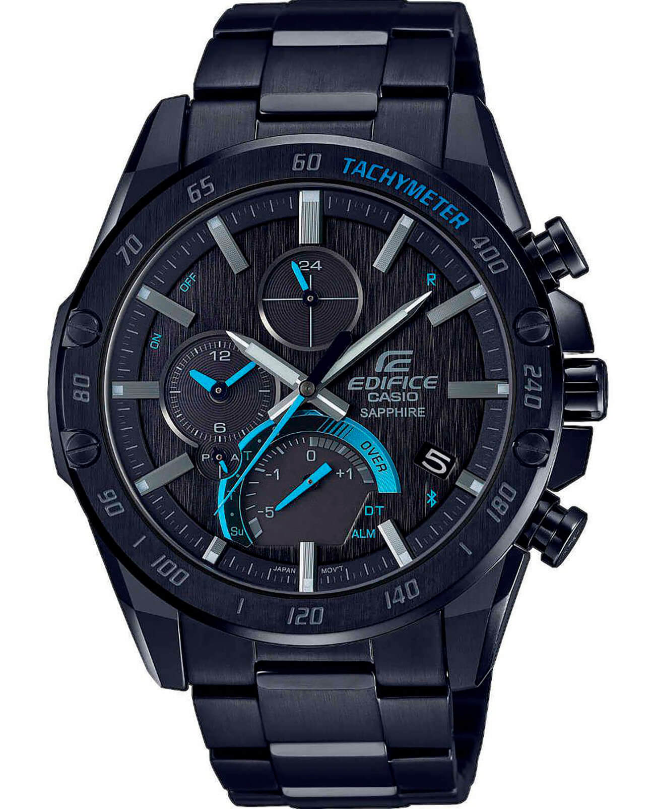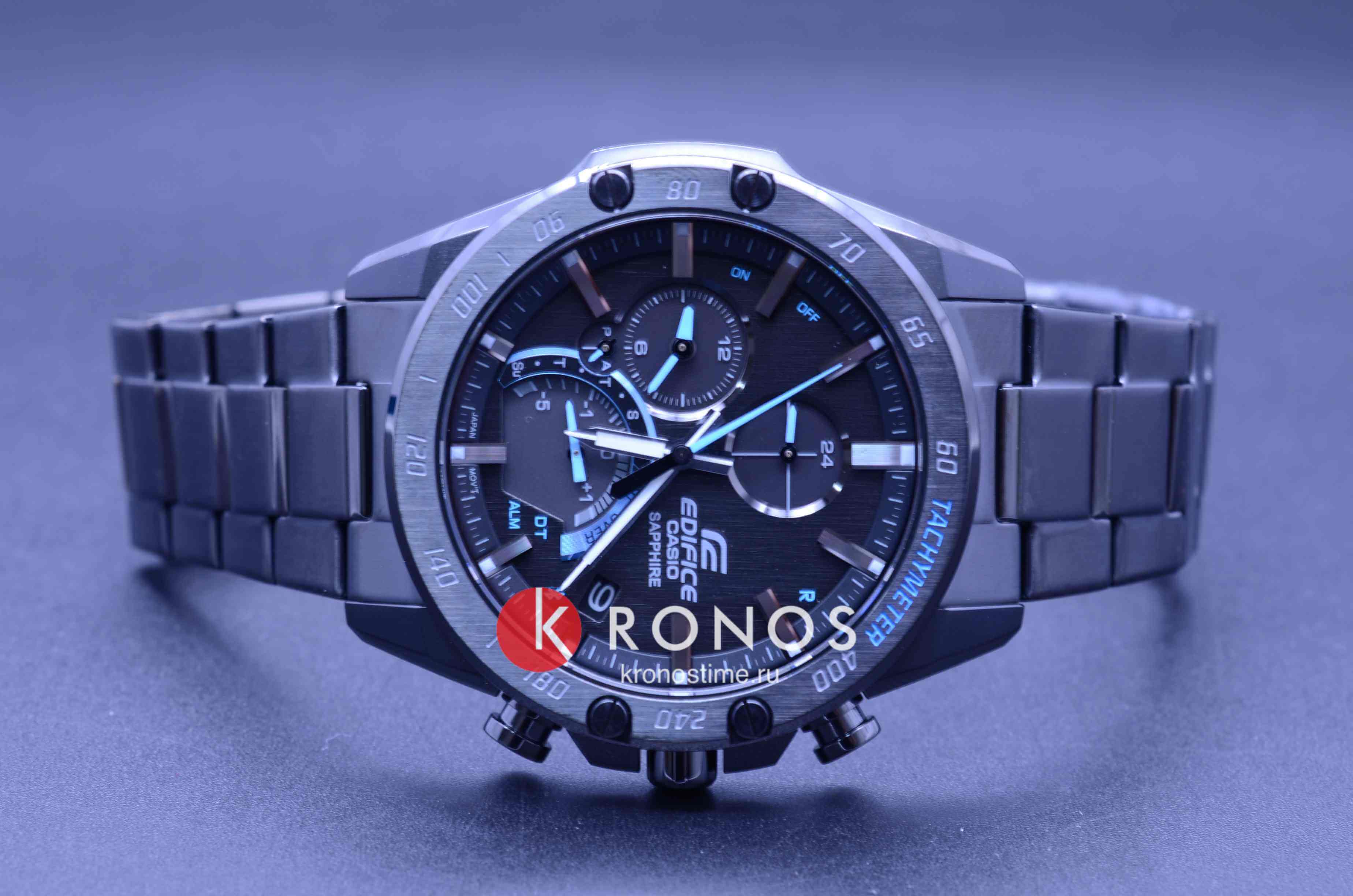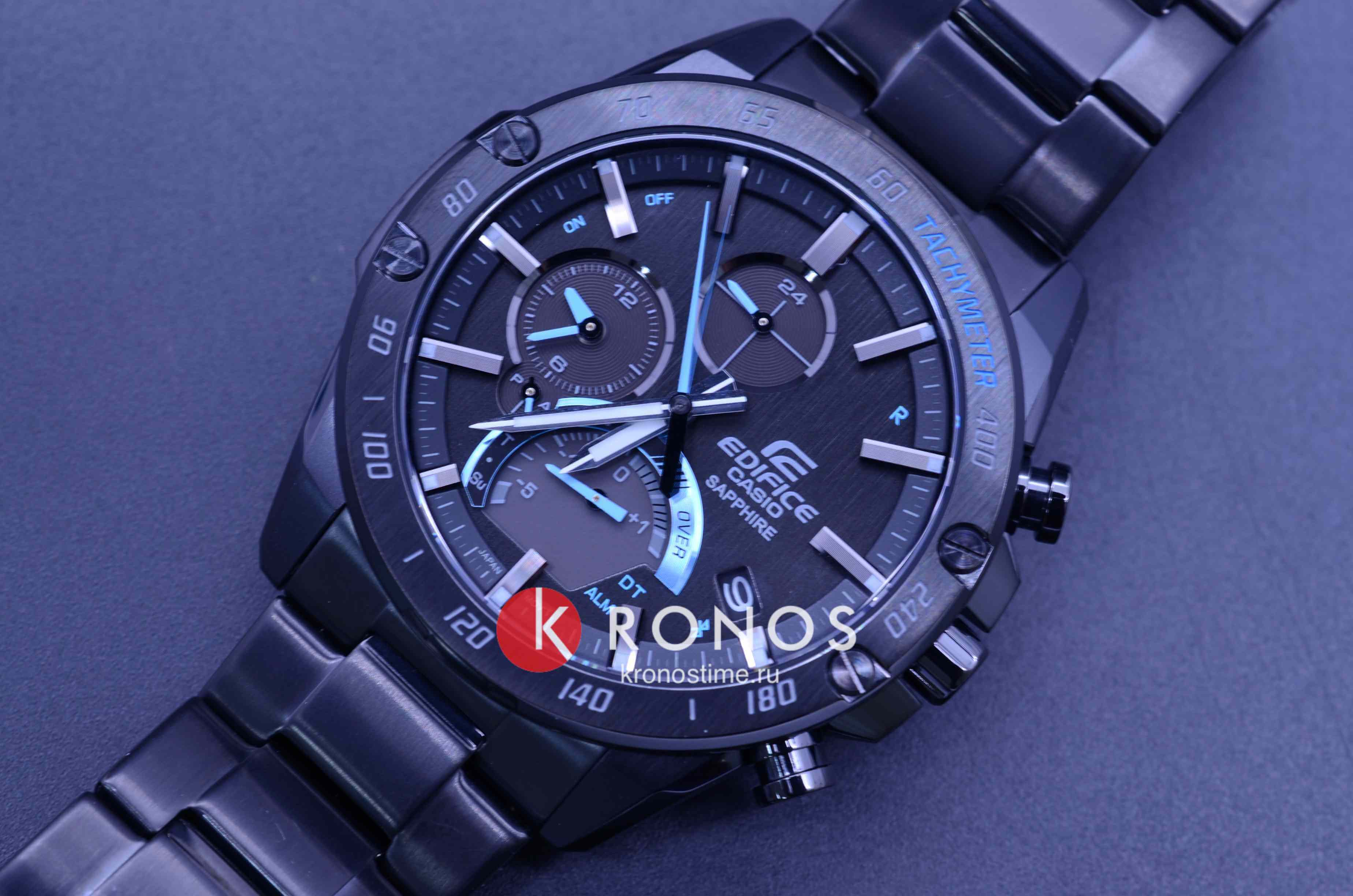 Стильная расцветка включает яркие голубые акценты. Счётчик на позиции 6 часов имеет градиентную окантовку, что стало отсылкой к скорости и динамике. Аксессуар обладает ультратонким стальным корпусом с IP-покрытиемIP-покрытиеМетод ионного напыления. Демонстрирует повышенную устойчивость к истиранию, окислению и химическим веществам. Под воздействием высокого давления и температуры около 1500°C молекулы металла надёжно соединяются с частицами корпуса часов. в 8,9 мм, по сравнению с предшественниками серии EQB. Этого удалось добиться за счёт более плотного расположения деталей на модуле. Часы способны синхронизироваться со смартфоном для настроек точного времени и поиска телефона – технология BluetoothBluetoothСовременная технология, позволяющая синхронизировать часы с телефоном и переносить данные. Часы с Bluetooth расширяют возможности вашего смартфона и делают его использование ещё более удобным.. Питание японского кварцевого механизма обеспечивается за счёт солнечной батареи , следить за уровнем зарядки устройства можно благодаря специальному индикатору. Циферблат защищён сапфировым стеклом, устойчивым к появлению царапин. Стрелки имеют люминесцентное покрытиеЛюминесцентное покрытиеПозволяет считывать показания времени в темноте. Производители наносят на стрелки, часовые индексы, безель или поверхность циферблата светонакопительный состав, дающий холодное свечение.. Модель подходит для плавания, отличается водостойкостью до 10 бар и заводной головкой с защитой. Функции: хронографХронографФункция позволяет измерять отрезки времени с особой точностью: часы, минуты, секунды. Верным признаком хронографа является наличие на циферблате 3 дополнительных окошек-счётчиков., секундомер, тахиметрТахиметрРазмеченная шкала, располагается на ободке или безеле часов. Тахиметр позволяет рассчитать скорость на определённом участке пути, расстояние измеряется в километрах или милях., будильник, мировое времяМировое время Полезное часовое усложнение, отображающее время в основных городах и известных областях по всему миру, оно связано с часовыми поясами, удобно для путешественников и бизнесменов. , календарь. Есть индикатор последнего круга для любителей гонок. Габариты: 49,9 x 45,6 x 8,9 мм.