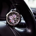 Ремешок выполнен из натуральной кожи чёрного цвета, обеспечивая комфорт при носке.  Модель обладает водонепроницаемостью до 100 метров, что делает её подходящей для плавания и сноркелинга.