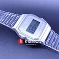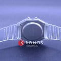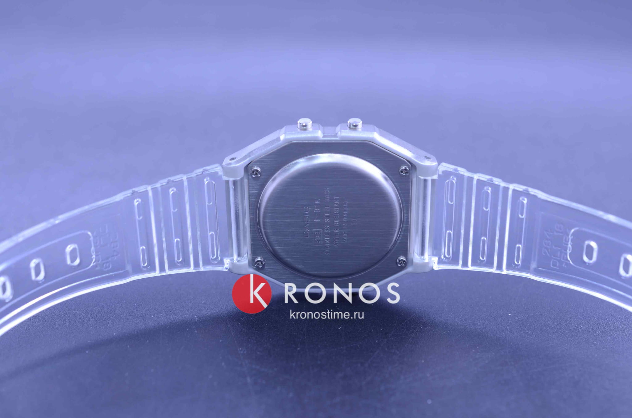 Аксессуар наделён узнаваемым квадратным корпусом, прототипом для которого стали первые модели от Casio. Винтажное исполнение не лишено современности, наручные часы предстают перед нами в полупрозрачном формате. Корпус выполнен из полимера, он обезопасит японский кварцевый калибр от случайных ударов и повреждений. Идентичный материал был выбран и для ремешка, комфортно сидящего на запястье. Часы оснащены светодиодной микроподсветкойСветодиодная подсветкаСветодиодная или LED-подсветка обеспечивает появление яркого холодного свечения за счёт LED-элементов - маленьких лампочек. Они потребляют минимальное количество энергии, чаще всего можно встретить 1 светодиод, в нижней части циферблата., освещающей циферблат сбоку. 1 батарейка будет обеспечивать питание механизма на протяжении 7 лет. Отображение времени можно выбрать в формате 12-ти или 24-х часов. Функции: будильник, секундомер, автоматический календарь. Габариты: 38,2 x 33,2 x 8,5 мм.