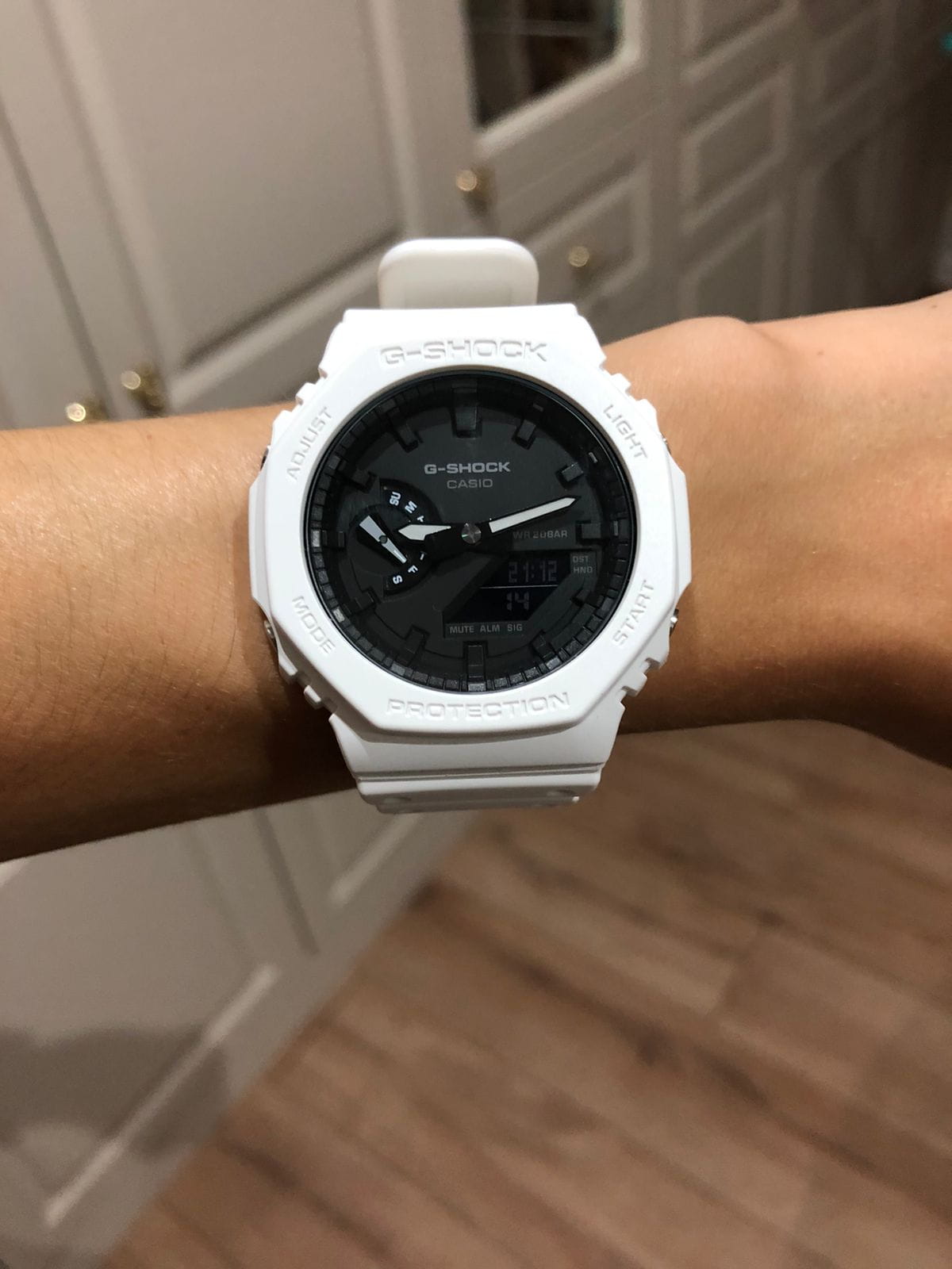 Долгожданная покупка ☺️То что хотела, получила ☺️Стильный черно-белый дизайн, подходит под одежду любого цвета. Материал ремешка приятный , не резинка которая трется об вещи. Подсветка для темного времени суток, мировое время и возможность настройки будильника/таймера