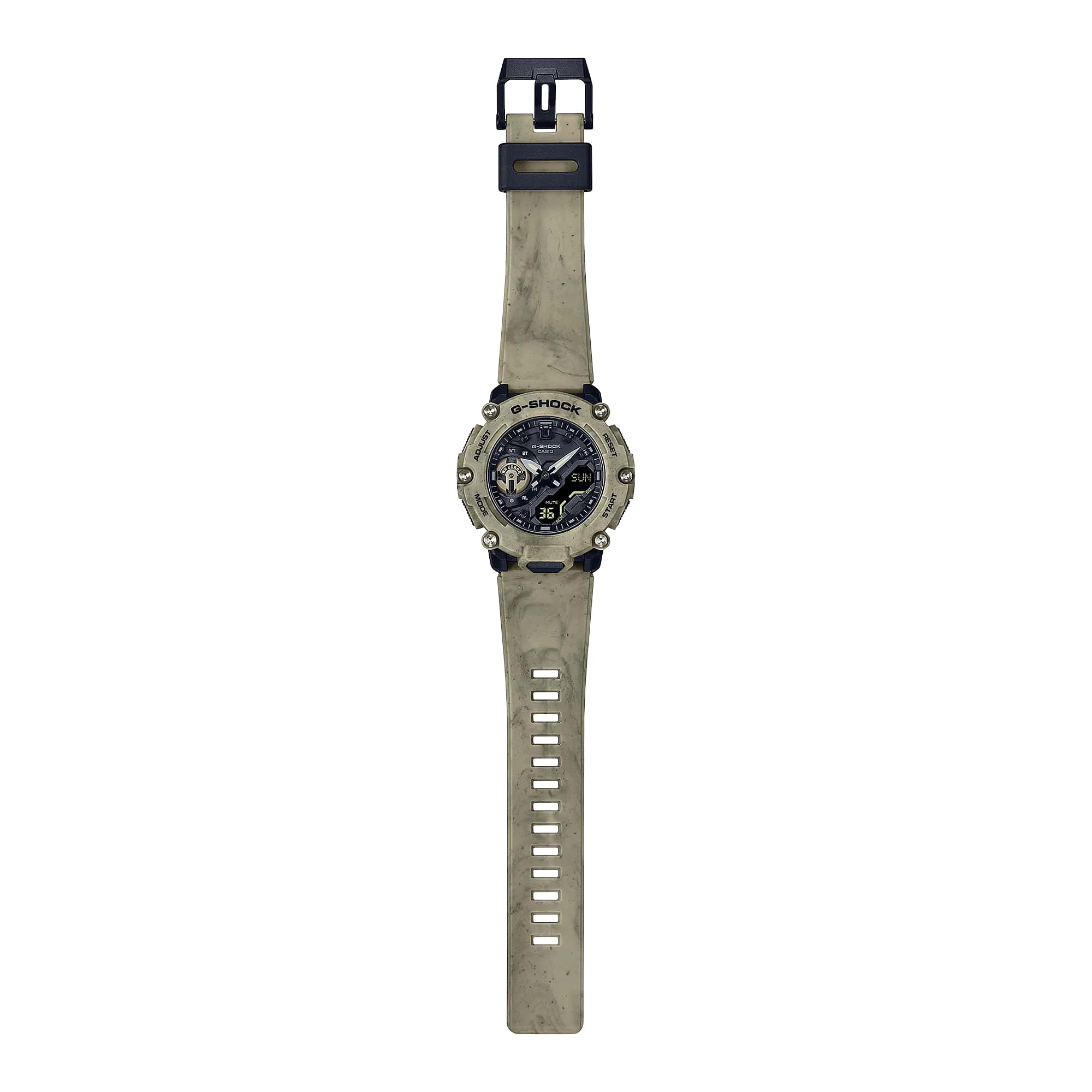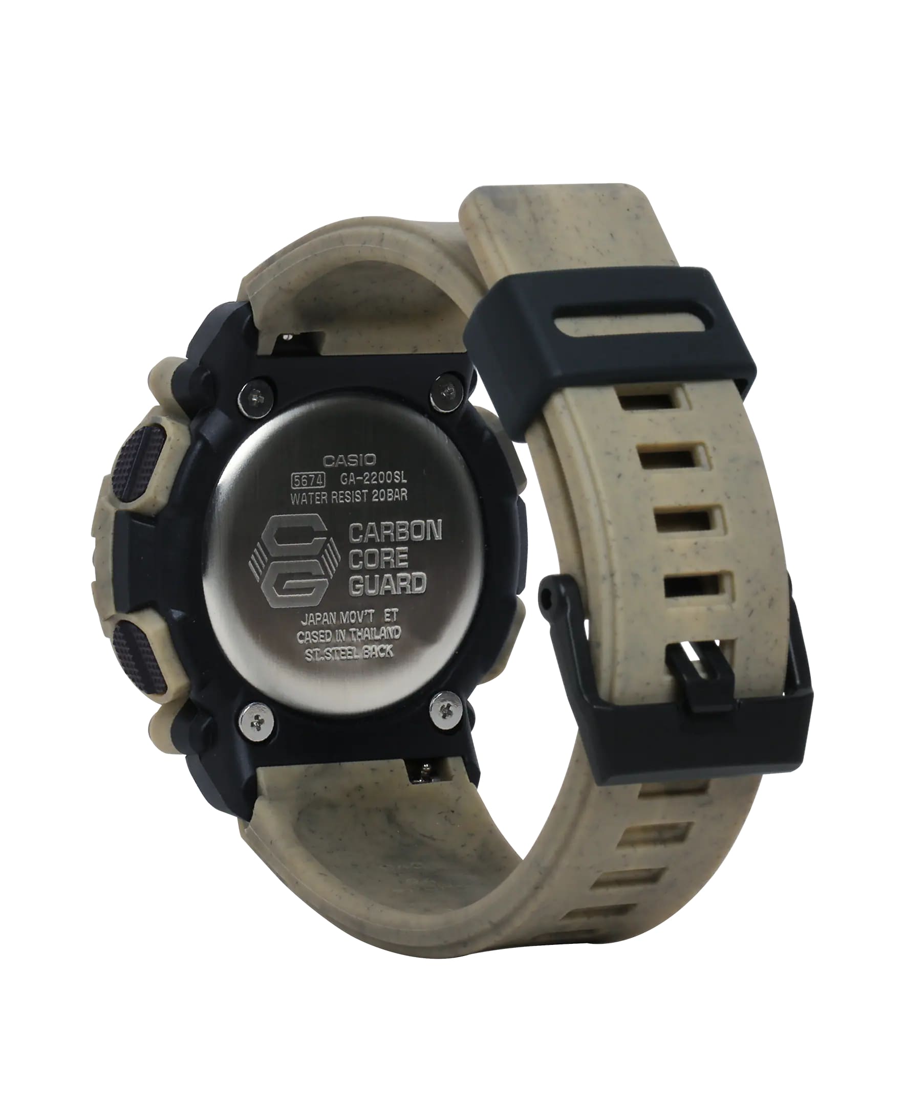 Мужские японские наручные часы Casio G-Shock GA-2200SL-5A, электронный механизм с высокой точностью. Класс водозащиты: 200 метров, позволит плавать, нырять и заниматься другими водными видами спорта. Корпус часов изготовлен из карбона, цвета.
