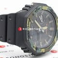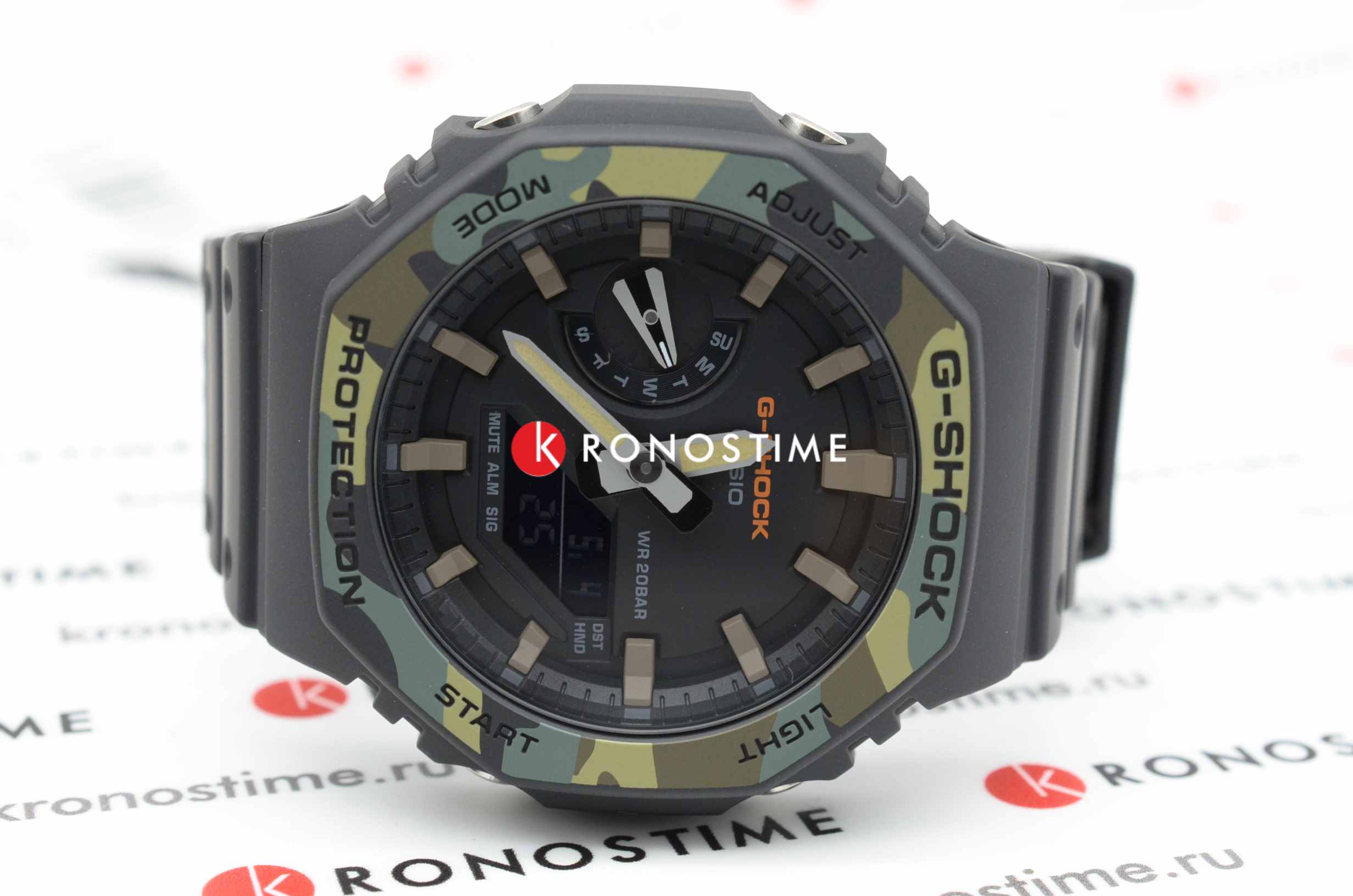 Аксессуар в темном цвете поможет дополнить повседневный образ. Внимание перенимает на себя безельБезельВнешний ободок, закрепляющий стекло. В спортивных часах так называется поворотное кольцо с делениями на циферблате, выполняет роль таймера – замеряет отрезки времени на шкале. Неподвижный безель – элемент декора. Однонаправленно вращающийся безель на дайверских часах позволяет фиксировать моменты погружения и выныривания на поверхность. с камуфляжным принтом, выполненный в форме октагона. Благодаря конструкции Carbon Core GuardCarbon Core Guard Новейшая структура корпуса, разработанная Casio. Полиуретановая пластина дополнительно усилена карбоновыми вставками, что придаёт специальную защиту от механических повреждений. Карбон отличается лёгкостью и прочностью. для тонкого ударопрочного корпусаУдаропрочный корпусМеханизм заключён в корпус, выполненный из современных материалов, устойчивых к ударам, механическим повреждениям и падению с высоты: инновационный пластик, карбон, нержавеющая сталь, титан. (11,8 мм) часы получили невероятную лёгкость, повышенную устойчивость к падению, повреждениям. Обновлённое крепление полимерного ремешка позволяет менять его в считанные секунды. Японский кварцевый механизм получает энергию от батарейки, рассчитанной на 3 года работы. ЛюминесцентнаяЛюминесцентное покрытиеПозволяет считывать показания времени в темноте. Производители наносят на стрелки, часовые индексы, безель или поверхность циферблата светонакопительный состав, дающий холодное свечение. и светодиодная подсветкаСветодиодная подсветкаСветодиодная или LED-подсветка обеспечивает появление яркого холодного свечения за счёт LED-элементов - маленьких лампочек. Они потребляют минимальное количество энергии, чаще всего можно встретить 1 светодиод, в нижней части циферблата.. Минеральное стекло. Сохранение водонепроницаемости до 10 бар. Будильник, хронографХронографФункция позволяет измерять отрезки времени с особой точностью: часы, минуты, секунды. Верным признаком хронографа является наличие на циферблате 3 дополнительных окошек-счётчиков., таймер, мировое времяМировое время Полезное часовое усложнение, отображающее время в основных городах и известных областях по всему миру, оно связано с часовыми поясами, удобно для путешественников и бизнесменов. , секундомер, вечный календарьВечный календарьКлассическое часовое усложнение, представляющее собой календарь, рассчитанный на несколько лет вперёд (стандартно – до 2099 года). Определяет текущую дату, день недели, месяц.. Габариты: 48,5 x 45,4 x 11,8 мм.