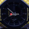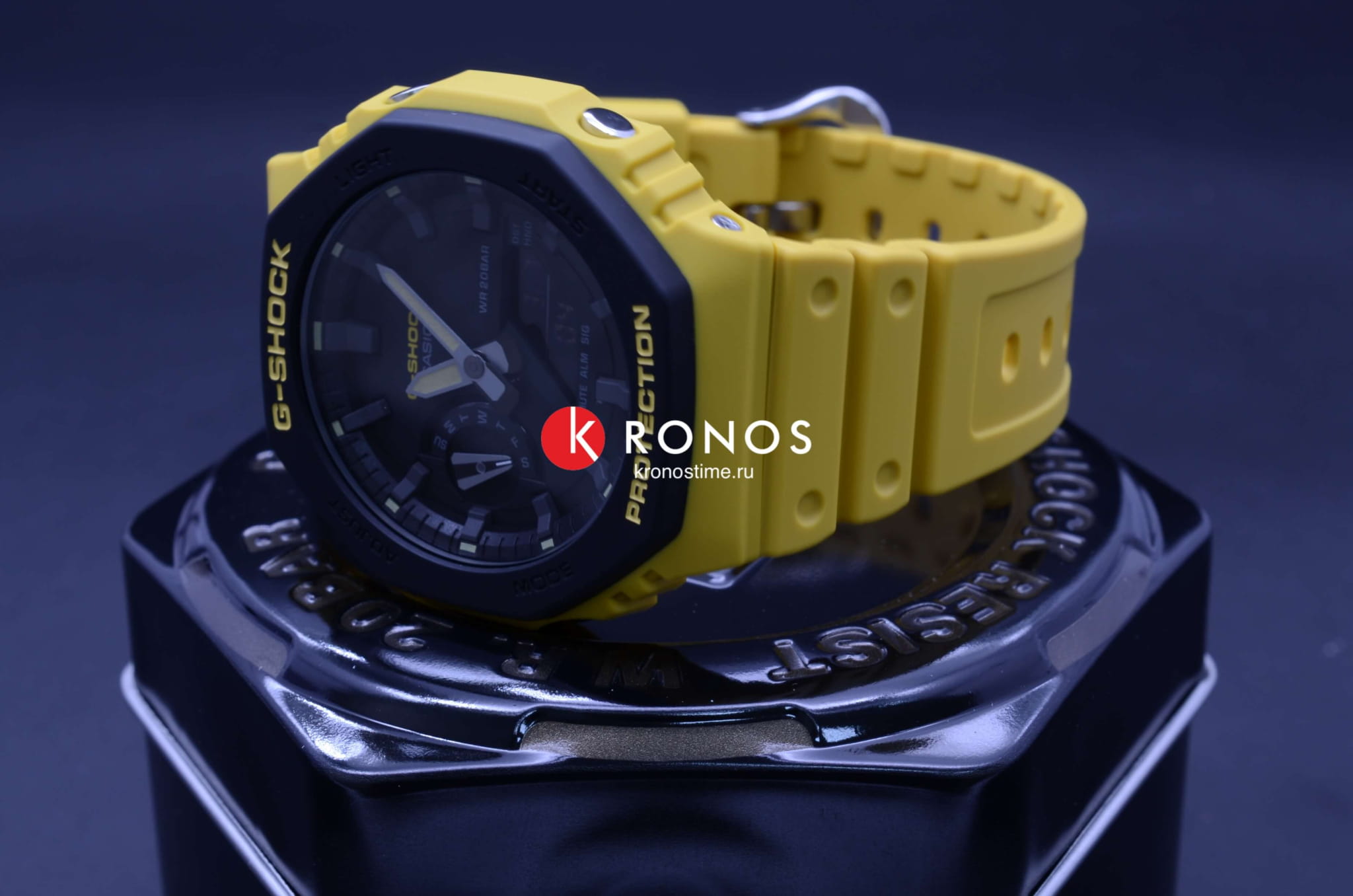 Аксессуар в жёлтом цвете поможет дополнить повседневный образ. Внимание перенимает на себя безельБезельВнешний ободок, закрепляющий стекло. В спортивных часах так называется поворотное кольцо с делениями на циферблате, выполняет роль таймера – замеряет отрезки времени на шкале. Неподвижный безель – элемент декора. Однонаправленно вращающийся безель на дайверских часах позволяет фиксировать моменты погружения и выныривания на поверхность., выполненный в форме октагона. Благодаря конструкции Carbon Core GuardCarbon Core Guard Новейшая структура корпуса, разработанная Casio. Полиуретановая пластина дополнительно усилена карбоновыми вставками, что придаёт специальную защиту от механических повреждений. Карбон отличается лёгкостью и прочностью. для тонкого ударопрочного корпусаУдаропрочный корпусМеханизм заключён в корпус, выполненный из современных материалов, устойчивых к ударам, механическим повреждениям и падению с высоты: инновационный пластик, карбон, нержавеющая сталь, титан. (11,8 мм) часы получили невероятную лёгкость, повышенную устойчивость к падению, повреждениям. Обновлённое крепление полимерного ремешка позволяет менять его в считанные секунды. Японский кварцевый механизм получает энергию от батарейки, рассчитанной на 3 года работы. ЛюминесцентнаяЛюминесцентное покрытиеПозволяет считывать показания времени в темноте. Производители наносят на стрелки, часовые индексы, безель или поверхность циферблата светонакопительный состав, дающий холодное свечение. и светодиодная подсветкаСветодиодная подсветкаСветодиодная или LED-подсветка обеспечивает появление яркого холодного свечения за счёт LED-элементов - маленьких лампочек. Они потребляют минимальное количество энергии, чаще всего можно встретить 1 светодиод, в нижней части циферблата.. Минеральное стекло. Сохранение водонепроницаемости до 10 бар. Будильник, хронографХронографФункция позволяет измерять отрезки времени с особой точностью: часы, минуты, секунды. Верным признаком хронографа является наличие на циферблате 3 дополнительных окошек-счётчиков., таймер, мировое времяМировое время Полезное часовое усложнение, отображающее время в основных городах и известных областях по всему миру, оно связано с часовыми поясами, удобно для путешественников и бизнесменов. , секундомер, вечный календарьВечный календарьКлассическое часовое усложнение, представляющее собой календарь, рассчитанный на несколько лет вперёд (стандартно – до 2099 года). Определяет текущую дату, день недели, месяц.. Габариты: 48,5 x 45,4 x 11,8 мм.