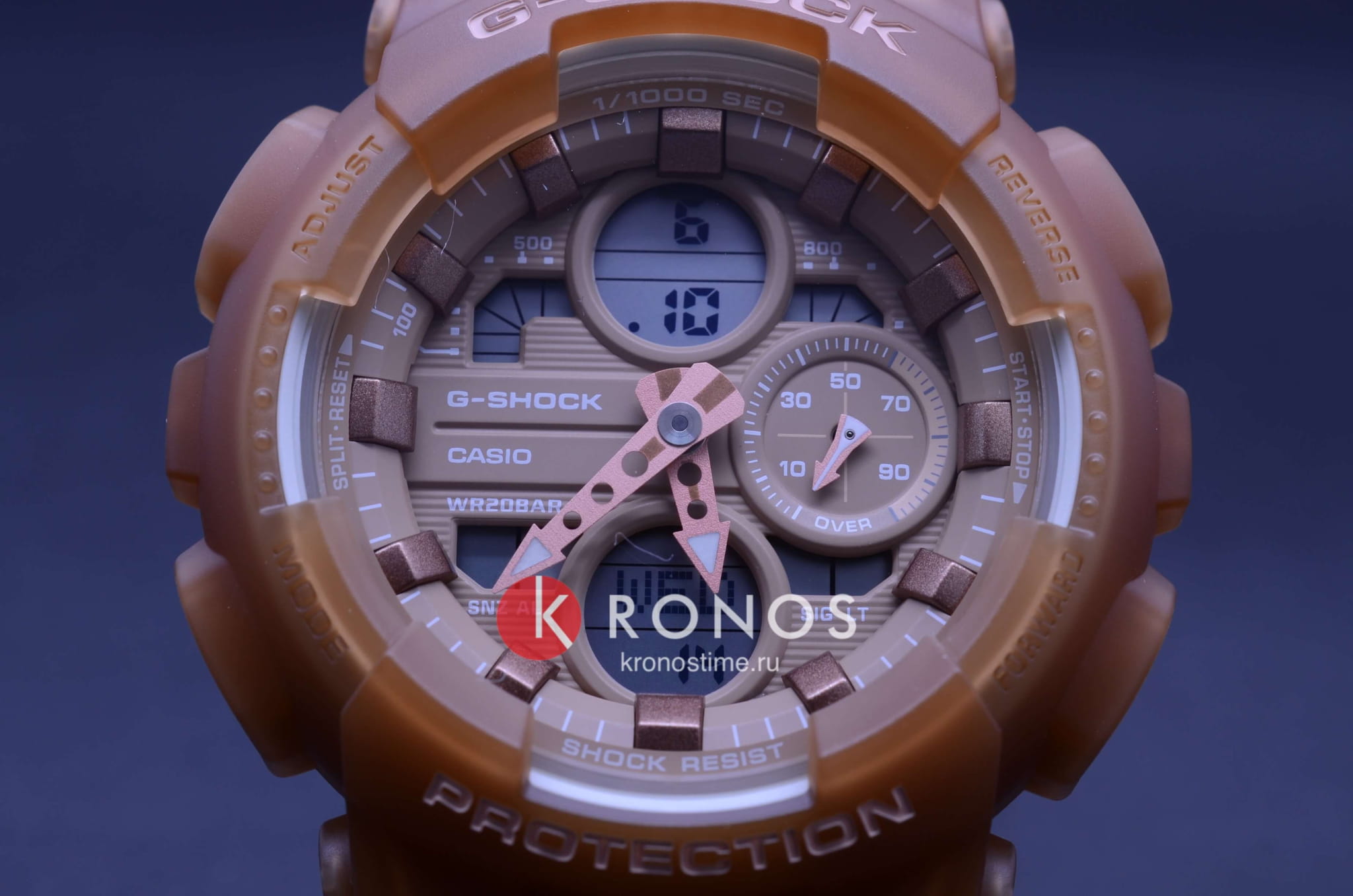 Компактный аксессуар имеет дизайн в скелетонизорованном формате. Полимерный корпус и ремешок цвета кофе с молоком изготовлены в полупрозрачном исполнении. Циферблат с минеральным стеклом наделён винтажными элементами: окошки и стрелки оформлены в духе музыкальных проигрывателей эпохи 90-х. Модель обладает противоударным корпусомУдаропрочный корпусМеханизм заключён в корпус, выполненный из современных материалов, устойчивых к ударам, механическим повреждениям и падению с высоты: инновационный пластик, карбон, нержавеющая сталь, титан., выдерживающим удары, вибрации, падение с высоты. Наручные часы станут идеальным вариантом для девушки, придерживающейся активного образа жизни. Японский кварцевый калибр характеризуется точностью хода +/- 15 секунд в месяц. Он работает от батарейки с 2-летним сроком службы. Часы подходят для плавания и ныряния, так как сохраняют водонепроницаемость при давлении до 20 бар. Циферблат подсвечивается LED-диодом Светодиодная подсветкаСветодиодная или LED-подсветка обеспечивает появление яркого холодного свечения за счёт LED-элементов - маленьких лампочек. Они потребляют минимальное количество энергии, чаще всего можно встретить 1 светодиод, в нижней части циферблата., функция автоподсветки активируется при поднесении часов к лицу. Функции: секундомер с точностью в 1/1000 секунды, хронографХронографФункция позволяет измерять отрезки времени с особой точностью: часы, минуты, секунды. Верным признаком хронографа является наличие на циферблате 3 дополнительных окошек-счётчиков., будильник, мировое времяМировое время Полезное часовое усложнение, отображающее время в основных городах и известных областях по всему миру, оно связано с часовыми поясами, удобно для путешественников и бизнесменов. – 48 городов, календарь, таймер, индикация средней скорости пройденного маршрута. Габариты: 49 x 45,9 x 15,8 мм.