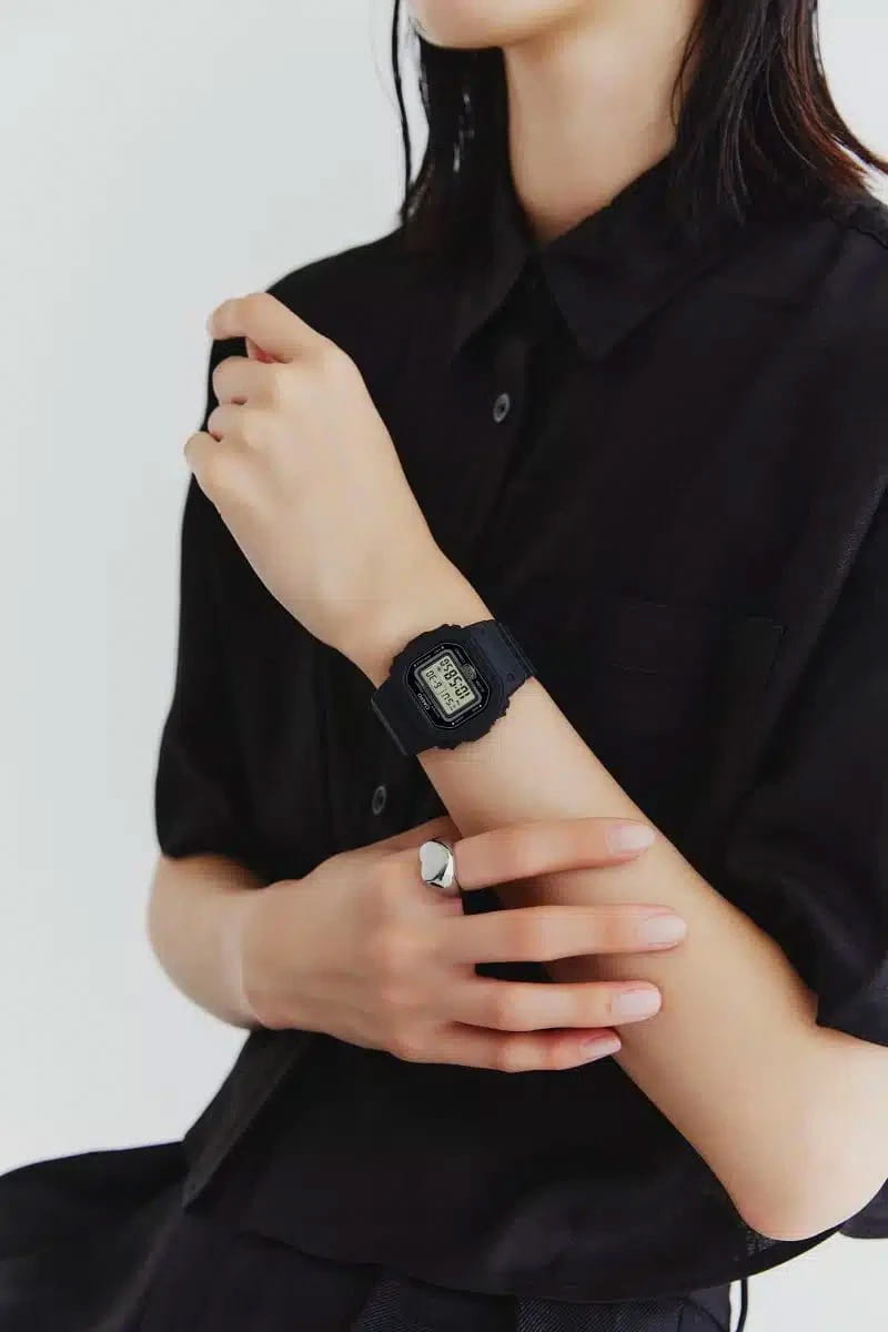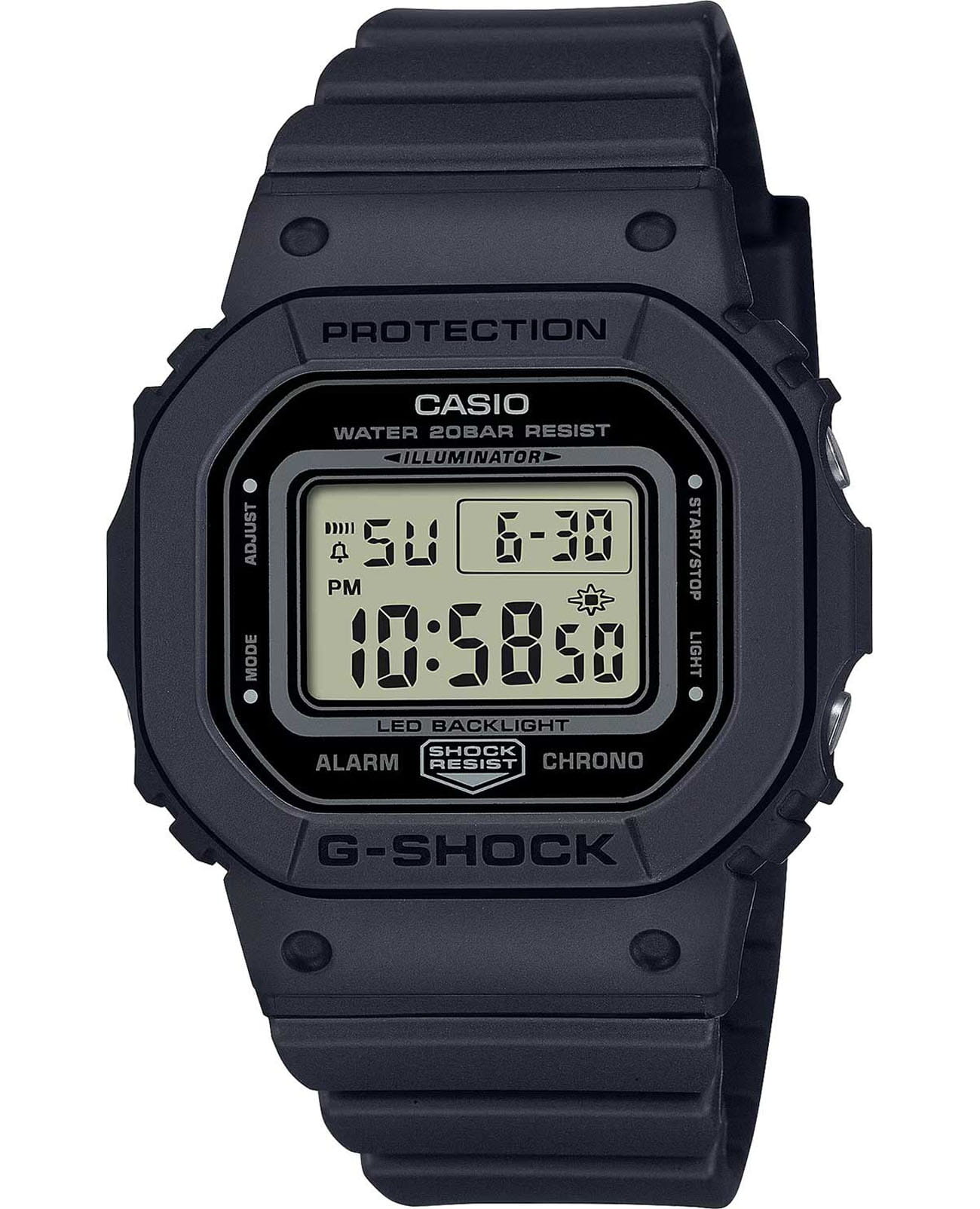 Японские женские часы-хронографХронографФункция позволяет измерять отрезки времени с особой точностью: часы, минуты, секунды. Верным признаком хронографа является наличие на циферблате 3 дополнительных окошек-счётчиков. Casio G-Shock GMD-S5600BA-1DR (GMD-S5600BA-1). Минеральное стеклоМинеральное стеклоМинеральное стекло представляет собой искусственно выращенный минерал кварца. Такое стекло отличается особой устойчивостью к повреждениям и царапинам. Уступает по некоторым качествам сапфировому стеклу. устойчивое к появлению царапин, обладающее высокой прозрачностью. Ударопрочный корпусУдаропрочный корпусМеханизм заключён в корпус, выполненный из современных материалов, устойчивых к ударам, механическим повреждениям и падению с высоты: инновационный пластик, карбон, нержавеющая сталь, титан. защищает механизм от ударов и вибрации. Светодиодная подсветкаСветодиодная подсветкаСветодиодная или LED-подсветка обеспечивает появление яркого холодного свечения за счёт LED-элементов - маленьких лампочек. Они потребляют минимальное количество энергии, чаще всего можно встретить 1 светодиод, в нижней части циферблата. освещает весь циферблат, после отпускания кнопки свечение продолжается еще некоторое время. Настраиваемое послесвечение 1,5 или 3сек. СекундомерСекундомерСекундоме́р — прибор, способный измерять интервалы времени с точностью до долей секунды.. ТаймерТаймерОтсчитывает секунды в обратном направлении в заданном интервале времени.. 5 ежедневных будильников. Почасовой сигнал времени. Вечный календарьВечный календарьКлассическое часовое усложнение, представляющее собой календарь, рассчитанный на несколько лет вперёд (стандартно – до 2099 года). Определяет текущую дату, день недели, месяц.. Класс водозащиты: 200 метров, позволит плавать, нырять и заниматься другими водными видами спорта. Ремешок из полимерного материала на стандартной застежке.