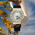 Японские женские часы-хронографХронографФункция позволяет измерять отрезки времени с особой точностью: часы, минуты, секунды. Верным признаком хронографа является наличие на циферблате 3 дополнительных окошек-счётчиков. Casio G-Shock GM-S2100BC-1A. Передовая технология ковки придает металлическому безелюБезельВнешний ободок, закрепляющий стекло. В спортивных часах так называется поворотное кольцо с делениями на циферблате, выполняет роль таймера – замеряет отрезки времени на шкале. Неподвижный безель – элемент декора. Однонаправленно вращающийся безель на дайверских часах позволяет фиксировать моменты погружения и выныривания на поверхность., теперь более светлого желто-золотого цвета, вид драпированной ткани. Благодаря ярко контрастирующему черному ремешку, элегантному и изысканному дизайну эти часы займут достойное место в вашей шкатулке для украшений. Минеральное стеклоМинеральное стеклоМинеральное стекло представляет собой искусственно выращенный минерал кварца. Такое стекло отличается особой устойчивостью к повреждениям и царапинам. Уступает по некоторым качествам сапфировому стеклу. устойчивое к появлению царапин, обладающее высокой прозрачностью. Ударопрочный корпусУдаропрочный корпусМеханизм заключён в корпус, выполненный из современных материалов, устойчивых к ударам, механическим повреждениям и падению с высоты: инновационный пластик, карбон, нержавеющая сталь, титан. с IP-покрытиемIP-покрытиеМетод ионного напыления. Демонстрирует повышенную устойчивость к истиранию, окислению и химическим веществам. Под воздействием высокого давления и температуры около 1500°C молекулы металла надёжно соединяются с частицами корпуса часов. защищает механизм от ударов и вибрации. Светодиодная подсветкаСветодиодная подсветкаСветодиодная или LED-подсветка обеспечивает появление яркого холодного свечения за счёт LED-элементов - маленьких лампочек. Они потребляют минимальное количество энергии, чаще всего можно встретить 1 светодиод, в нижней части циферблата. освещает весь циферблат, после отпускания кнопки свечение продолжается еще некоторое время. Настраиваемое послесвечение 1,5 или 3сек. Мировое времяМировое время Полезное часовое усложнение, отображающее время в основных городах и известных областях по всему миру, оно связано с часовыми поясами, удобно для путешественников и бизнесменов. – 48 городов (31 часовых поясов). СекундомерСекундомерСекундоме́р — прибор, способный измерять интервалы времени с точностью до долей секунды. с точностью измерения 1/100 секунды и измерением до 23 часов 59 минут 59,99 cек. ТаймерТаймерОтсчитывает секунды в обратном направлении в заданном интервале времени. обратного отсчета (диапазон времени 24 часа), автоматический календарь, 12/24 отображение времени. 5 будильниковБудильникБуди́льник — часы, в заданный момент времени подающие звуковой, световой и/или в редких случаях другой сигнал., ежечасный сигнал. Функция включения/отключения летнего времени. Функции отключения/включения звука и перемещения стрелок для беспрепятственного просмотра информации на цифровых дисплеях. Батарея рассчитана на 3 года. Класс водозащиты: 200 метров, позволит плавать, нырять и заниматься другими водными видами спорта. Ремешок из полимерного материала на стандартной застежке.