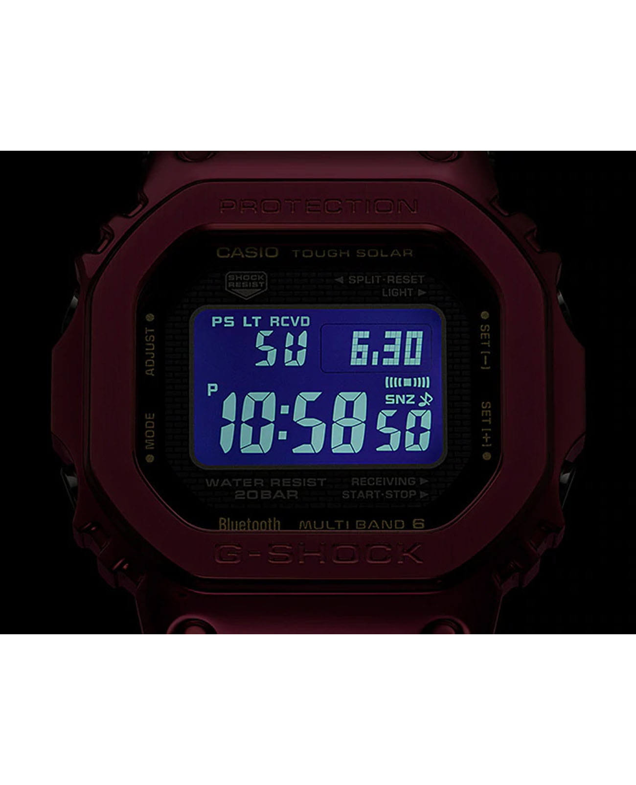 Японские мужские часы GMW-B5000RD-4ER из коллекции G-Shock с легендарным 8-угольным корпусом являются идеальным вариантом в любой ситуации. Премиальные наручные часы бордовой расцветки, напоминающие ретро-модели от Casio, имеют противоударный корпус , благодаря безупречной полировке он выглядит хромированным. Безель имеет естественную стальную структуру. Слой материала Alpha Gel® обеспечивает дополнительную устойчивость к ударам и повреждениям, завинчивающаяся задняя крышка имеет защитное DLC-покрытие . Модель оснащена богатым функционалом: Bluetooth , таймер, функция поиска телефона, UTC , будильник, мировое время , секундомер, хронограф , календарь с индикацией текущей даты и месяца. Минеральное стекло устойчиво к возникновению царапин. Водостойкость при давлении 20 бар. Технология Touch Solar . Яркая светодиодная подсветка . Стальной браслет с безопасной застёжкой. Габариты: 43.2x49.3x13 мм.