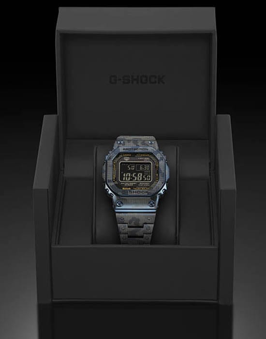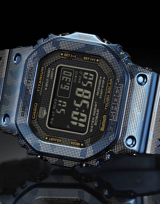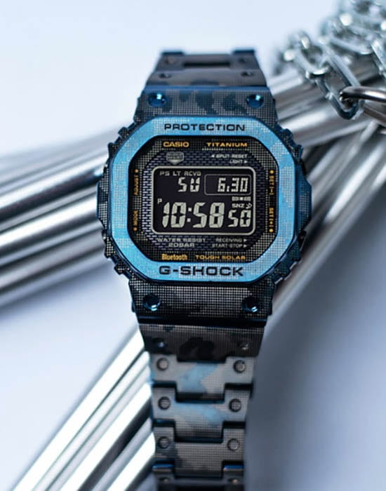 Мужские японские часы Limited Edition из коллекции G-shock относятся к премиальным моделям, представляя собой оригинальное сочетание ударопрочных характеристик и камуфляжного дизайна. Выпущены ограниченным тиражом в 500 экземпляров на весь мир. Для наручных часов в необычном «военном» исполнении была использована особая лазерная технология точечного нанесения рисунка. Легендарный 8-угольный ударопрочный корпусУдаропрочный корпусМеханизм заключён в корпус, выполненный из современных материалов, устойчивых к ударам, механическим повреждениям и падению с высоты: инновационный пластик, карбон, нержавеющая сталь, титан. и браслет сделаны из титана с IP-покрытиемIP-покрытиеМетод ионного напыления. Демонстрирует повышенную устойчивость к истиранию, окислению и химическим веществам. Под воздействием высокого давления и температуры около 1500°C молекулы металла надёжно соединяются с частицами корпуса часов., материал отличается устойчивостью к магнитным полям и перепадам температуры, не вызывает аллергии даже на чувствительной коже. Поверхность имеет DLC-покрытиеDLC-покрытиеDiamond like carbon - одно из лучших видов покрытия, представляющее собой углерод с алмазными свойствами. На поверхность материала наносятся распавшиеся молекулы углерода, превращающиеся в плёнку из алмазоподобных связей, которая перенимает твёрдость алмаза., защищающее от царапин и повреждений. Для полной ударопрочности конструкции дополнительно применили слой материала Alpha Gel®. Технология , индикатор состояния заряда батареи. Сапфировое стекло с антибликовым покрытием. Светодиодная подсветкаСветодиодная подсветкаСветодиодная или LED-подсветка обеспечивает появление яркого холодного свечения за счёт LED-элементов - маленьких лампочек. Они потребляют минимальное количество энергии, чаще всего можно встретить 1 светодиод, в нижней части циферблата.. Сохранение водонепроницаемости при давлении до 20 бар. Bluetooth-синхронизация со смартфономBluetoothСовременная технология, позволяющая синхронизировать часы с телефоном и переносить данные. Часы с Bluetooth расширяют возможности вашего смартфона и делают его использование ещё более удобным., функция поиска телефона. Секундомер, таймер, автоматический календарь, мировое времяМировое время Полезное часовое усложнение, отображающее время в основных городах и известных областях по всему миру, оно связано с часовыми поясами, удобно для путешественников и бизнесменов. .