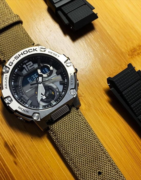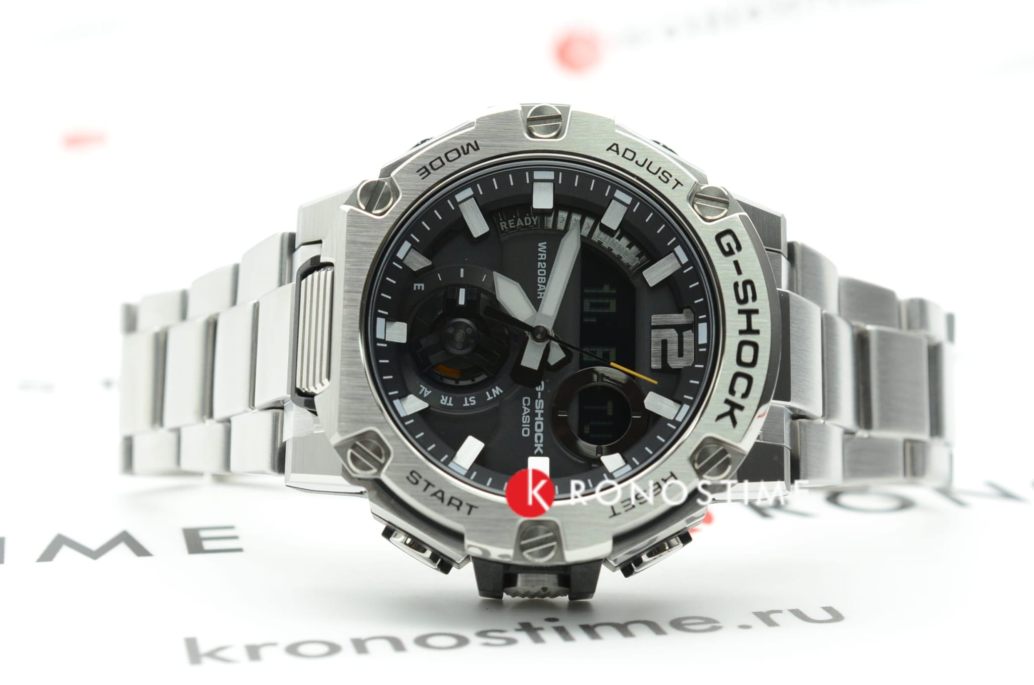 Японские мужские часы Casio G-Shock GST-B300E-5AER привлекают брутальным спортивным дизайном. Корпус имеет структуру Carbon Core GuardCarbon Core Guard Новейшая структура корпуса, разработанная Casio. Полиуретановая пластина дополнительно усилена карбоновыми вставками, что придаёт специальную защиту от механических повреждений. Карбон отличается лёгкостью и прочностью., что говорит о повышенной ударопрочности. БезельБезельВнешний ободок, закрепляющий стекло. В спортивных часах так называется поворотное кольцо с делениями на циферблате, выполняет роль таймера – замеряет отрезки времени на шкале. Неподвижный безель – элемент декора. Однонаправленно вращающийся безель на дайверских часах позволяет фиксировать моменты погружения и выныривания на поверхность. и браслет изготовлены из стали 316L. Японский кварцевый механизм отличается высокой точностью хода 15 +/- секунд в месяц. Часы оснащены инновационной технологией , синхронизация со смартфоном происходит с помощью BluetoothBluetoothСовременная технология, позволяющая синхронизировать часы с телефоном и переносить данные. Часы с Bluetooth расширяют возможности вашего смартфона и делают его использование ещё более удобным.. Возможности: двойная автоматическая подсветка, мировое времяМировое время Полезное часовое усложнение, отображающее время в основных городах и известных областях по всему миру, оно связано с часовыми поясами, удобно для путешественников и бизнесменов. , будильник, хронографХронографФункция позволяет измерять отрезки времени с особой точностью: часы, минуты, секунды. Верным признаком хронографа является наличие на циферблате 3 дополнительных окошек-счётчиков., календарь, таймер.