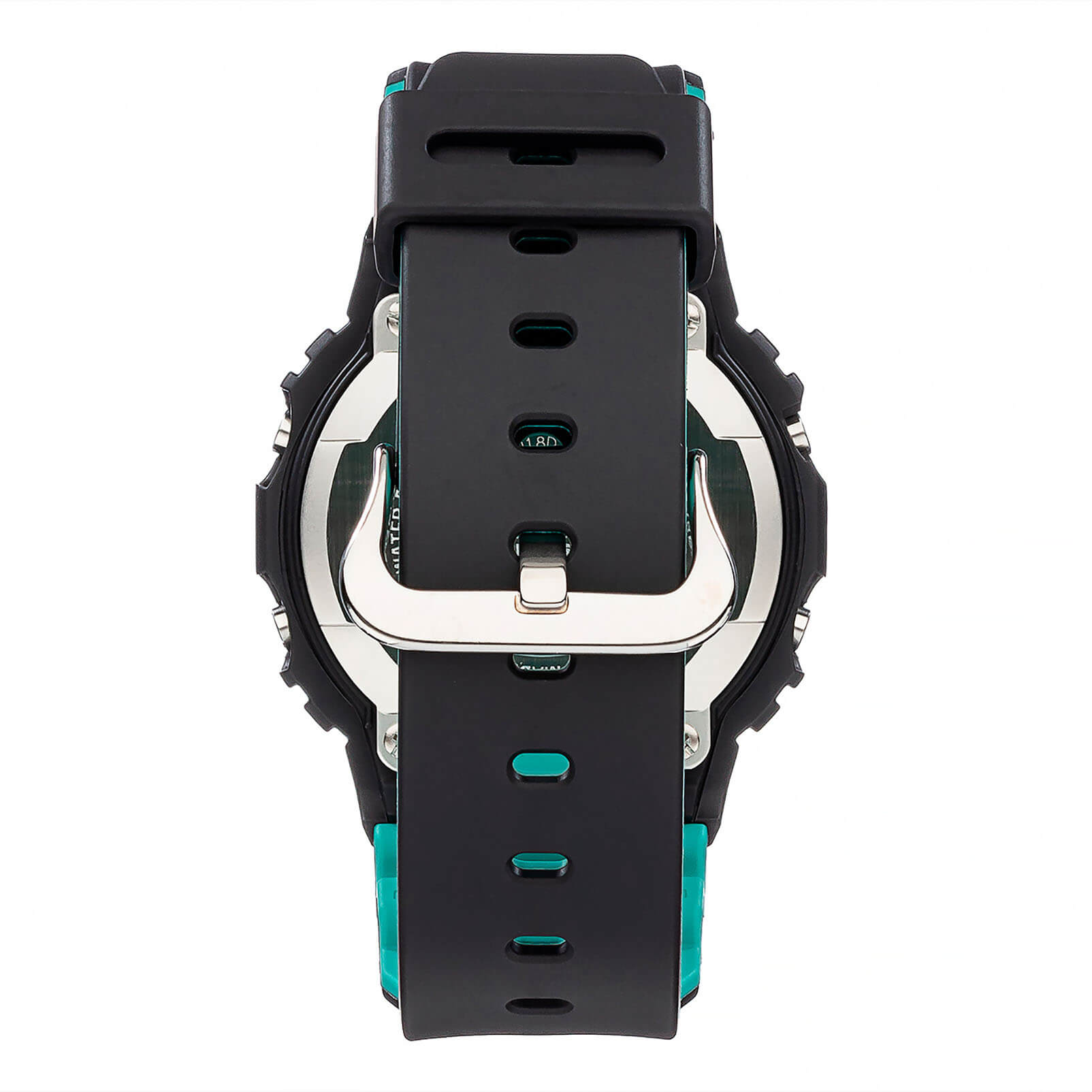 Модель сделана в цветовом оформлении духа 90-х, она имеет классический для часов Casio 8-угольный противоударный корпусУдаропрочный корпусМеханизм заключён в корпус, выполненный из современных материалов, устойчивых к ударам, механическим повреждениям и падению с высоты: инновационный пластик, карбон, нержавеющая сталь, титан., благодаря которому дизайн приобретает узнаваемые черты. Аксессуар выполнен из полимерного материала, устойчивого к ударам, повреждениям, вибрации, падению. Синхронизация времени и настройка функций осуществляется с помощью технологии BluetoothBluetoothСовременная технология, позволяющая синхронизировать часы с телефоном и переносить данные. Часы с Bluetooth расширяют возможности вашего смартфона и делают его использование ещё более удобным., управление возможностями происходит в приложении на телефоне G-Shock Connected. Японский кварцевый калибр. Питание от солнечного света . Автоматический переход в режим сохранения энергии для экономии расхода батареи. Минеральное стекло. Электролюминесцентная подсветкаЭлектролюминесцентная подсветкаЭлектролюминесцентная панель устанавливается под ЖК-экраном часов, при нажатии кнопки электричество преобразуется в свет за счёт подачи напряжения на атомы фосфора, такой тип подсветки позволяет освещать весь циферблат.. Водонепроницаемость до 200 метров. Секундомер, коррекция текущего времени радиосигналом, таймер, хронографХронографФункция позволяет измерять отрезки времени с особой точностью: часы, минуты, секунды. Верным признаком хронографа является наличие на циферблате 3 дополнительных окошек-счётчиков., будильник, мировое времяМировое время Полезное часовое усложнение, отображающее время в основных городах и известных областях по всему миру, оно связано с часовыми поясами, удобно для путешественников и бизнесменов. , календарь. Габариты: 48,9 x 42,8 x 13,4 мм.
