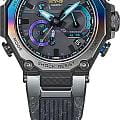 Мужские кварцевые часы Casio MTG-B2000YST-1A — это экстремальный аксессуар, вдохновлённый охотниками за штормами и созданный для самых суровых условий. Модель собрана исключительно в Японии на производстве Casio в Ямагата, что гарантирует высочайшее качество исполнения. Корпус выполнен из стали с IP-покрытиемIP-покрытиеМетод ионного напыления. Демонстрирует повышенную устойчивость к истиранию, окислению и химическим веществам. Под воздействием высокого давления и температуры около 1500°C молекулы металла надёжно соединяются с частицами корпуса часов. и карбонового материала, а его дизайн напоминает цвет неба перед бурей. Защиту механизма обеспечивает система Triple G Resist — тройная защита от ударов, центробежных сил и вибраций. Дополнительно используется двухкомпонентная система Dual Core Guard, состоящая из Carbon Core GuardCarbon Core Guard Новейшая структура корпуса, разработанная Casio. Полиуретановая пластина дополнительно усилена карбоновыми вставками, что придаёт специальную защиту от механических повреждений. Карбон отличается лёгкостью и прочностью. и Metal Core Guard, обеспечивающая максимальную устойчивость к повреждениям. Часы работают от солнечной энергии благодаря технологии Tough SolarTough SolarТехнология основана на подзарядке аккумулятора от источника солнечного света, специальная панель улавливает солнечные лучи и преобразует их в энергию для работы часов. Достаточно пары минут нахождения на солнце для функционирования часов в течении суток., а индикатор заряда батареи позволяет контролировать уровень энергии. Время работы при нормальном использовании без подзарядки — до 5 месяцев, при включённой функции энергосбережения — до 29 месяцев. Стрелки автоматически корректируются каждые 60 минут, если их положение изменяется. Циферблат черного цвета с метками в виде штрихов защищён сапфировым стекломСапфировое стеклоПрочный и надёжный материал из кристалла сапфира синтетического происхождения, характеризующийся особой твёрдостью и устойчивостью к царапинам и повреждениям. с антибликовым покрытиемАнтибликовое покрытиеСлой оксида металла в 0,13-0,3 микрон, благодаря которому стекло часов не бликует и не отражает свет. Антибликовое покрытие уменьшает отражение света в 10 раз, обеспечивая отличную читаемость показателей циферблата., устойчивым к царапинам. Подсветка выполнена по технологии NeobriteПодсветка NeobriteИспользование светонакопительных составов на основе сульфида цинка или алюмината стронция, яркий свет можно наблюдать на протяжении 6-10 часов после «зарядки» часов около источника света., обеспечивающей длительное послесвечение даже после кратковременного нахождения на свету. Светодиодная подсветка (Super Illuminator) освещает весь циферблат, после отпускания кнопки свечение продолжается ещё некоторое время. Функциональность модели включает секундомер с точностью 1 секунда и временем измерения до 24 часов, SPLIT-хронограф, таймер обратного отсчёта от 1 минуты до 24 часов, второй часовой пояс, мировое время (27 часовых поясов) и автоматический переход на летнее время. Система Multi Band 6 принимает сигналы от шести радиостанций в разных частях мира: Германия, Англия, США, Япония, Китай — обеспечивая точное время практически по всему миру. Система Smart Access позволяет управлять функциями через электронную заводную головку: поворот или нажатие — переключение ре