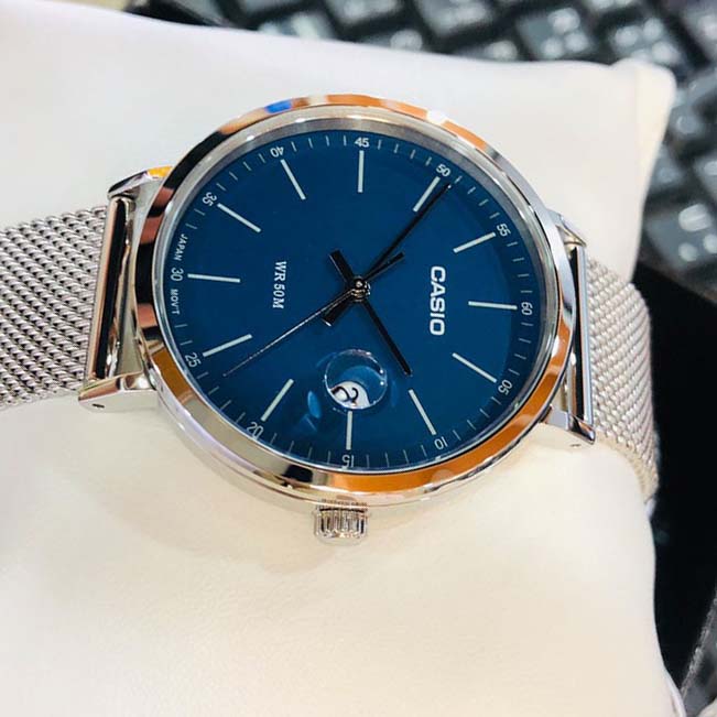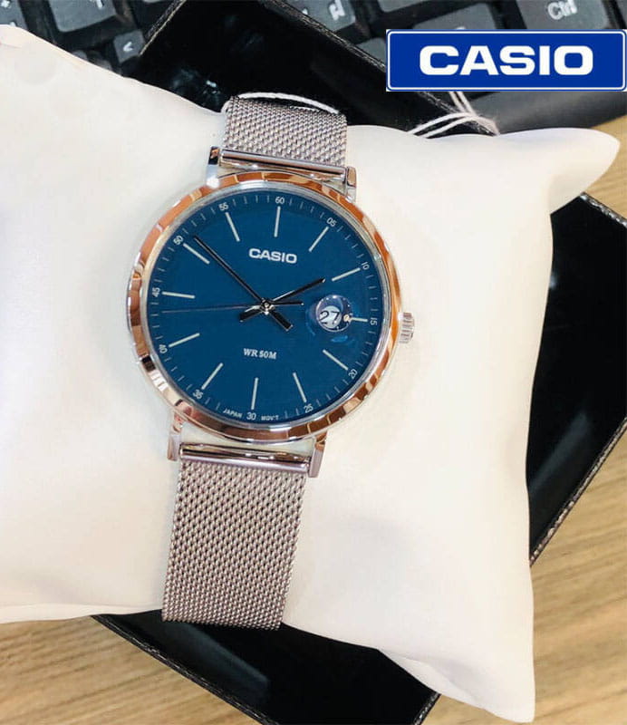 Японские мужские наручные часы Casio Collection MTP-E175M-2E с минеральным стекломМинеральное стеклоМинеральное стекло представляет собой искусственно выращенный минерал кварца. Такое стекло отличается особой устойчивостью к повреждениям и царапинам. Уступает по некоторым качествам сапфировому стеклу., кварцевый механизм с высокой точностью. Окошко даты с увеличительным стеклом. Класс водозащиты: 50 метров, позволит защитить корпус от случайных брызг или капель дождя. Корпус часов изготовлен из стали, серебристого цвета.Стальной браслет на раскладной застёжкеРаскладная застёжкаТакой тип застёжки используется только на браслетах из металла. Она никогда не раскрывается полностью, происходит разделение на 2 и более частей. Раскладывающая застёжка снизит вероятность потери часов к минимуму..
