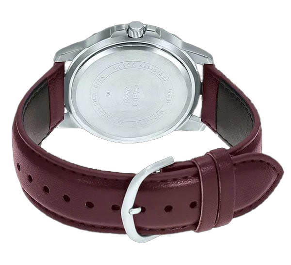 Кварцевый механизм с высокой точностью. Минеральное стеклоМинеральное стеклоМинеральное стекло представляет собой искусственно выращенный минерал кварца. Такое стекло отличается особой устойчивостью к повреждениям и царапинам. Уступает по некоторым качествам сапфировому стеклу. устойчивое к появлению царапин, обладающее высокой прозрачностью. Стрелки с люминесцентным покрытиемЛюминесцентное покрытиеПозволяет считывать показания времени в темноте. Производители наносят на стрелки, часовые индексы, безель или поверхность циферблата светонакопительный состав, дающий холодное свечение.. Класс водозащиты: 30 метров, позволит защитить корпус от случайных брызг или капель дождя. Корпус часов изготовлен из нержавеющей стали с PVD-покрытиемPVDУльтратонкое покрытие наносится в технике вакуумного напыления, сочетает в себе нитрид титана особой прочности со слоем золота или оксида хрома. Несёт в себе декоративную или защитную функцию.. Кожаный ремешок с классической застежкой.