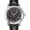 Брендовый хронографХронографФункция позволяет измерять отрезки времени с особой точностью: часы, минуты, секунды. Верным признаком хронографа является наличие на циферблате 3 дополнительных окошек-счётчиков. показывает время с высокой точностью хода за счёт швейцарского кварцевого механизма ETA 251.471. Сапфировое стекло защищает циферблат с лаконичным узором. Стильно смотрится чёрный ремешок из натуральной кожи. Модель сохраняет водостойкость до 100 метров.