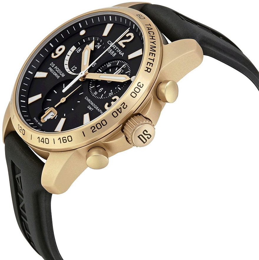 Каучуковый ремешок обеспечивает комфортное ношение. Швейцарский кварцевый механизм G10.962 BF Precidrive™Precidrive™Инновационный кварцевый механизм Certina. Часы, оснащённые этим швейцарским калибром, приравниваются к точности к сертифицированным хронометрам, точность хода составляет +/-10 секунд в год. отличается высокой точностью хода. Ультралёгкий алюминиевый корпус. Сапфировое стекло. ХронографХронографФункция позволяет измерять отрезки времени с особой точностью: часы, минуты, секунды. Верным признаком хронографа является наличие на циферблате 3 дополнительных окошек-счётчиков., календарь, GMTGMTОтображение времени второго часового пояса.Такая функция особенно актуальна для путешественников и бизнесменов,которые общаются с людьми из разных стран,теперь вы всегда будете знать,какой час у вашего партнёра или близкого человека., секундомер, тахиметрТахиметрРазмеченная шкала, располагается на ободке или безеле часов. Тахиметр позволяет рассчитать скорость на определённом участке пути, расстояние измеряется в километрах или милях..