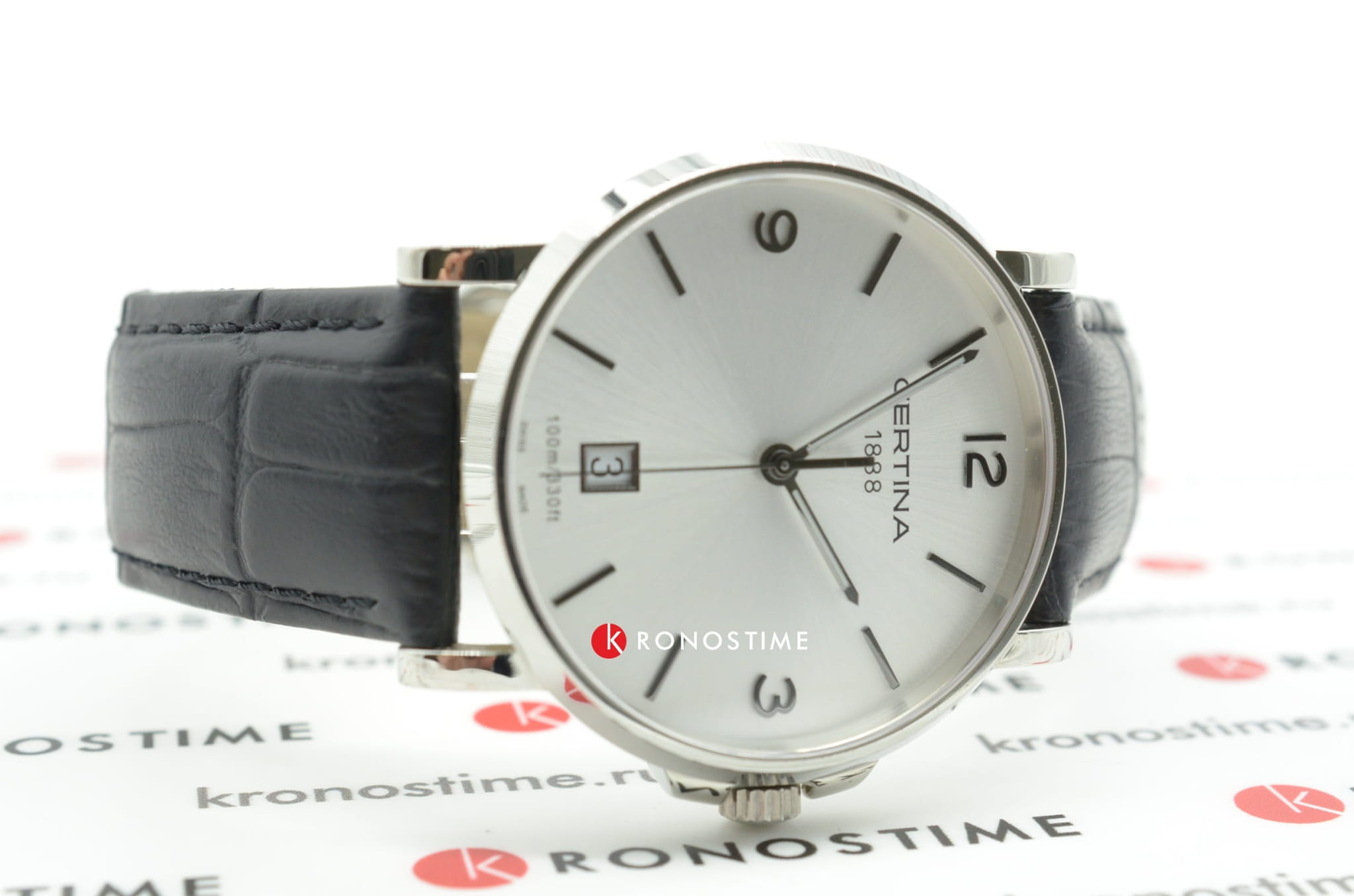 Брендовый аксессуар в чёрно-серебристой цветовой гамме отличается безупречным качеством ввиду применения надёжных современных материалов: стекло из сапфира, устойчивое к появлению царапин, натуральная кожа для изготовления ремешка, прочный корпус из хирургической стали 316L. Швейцарский кварцевый калибр ETA F06.111 обеспечивает абсолютную точность показаний. Сохранение водонепроницаемости до 10 бар. Система DS ConceptDS ConceptDouble Security Concept, обозначает двойную надёжность и безупречную точность часов Certina. Двойная система защиты подразумевает обеспечение максимальной устойчивости к ударам и высоких показателей водонепроницаемости.. Отображение текущего числа, функция EOLEOLПредставляет собой систему, уведомляющую владельца часов о необходимости замены элемента питания. За 2 недели до полного разряда батарейки секундная стрелка перестаёт ходить чётко и начинает перепрыгивать на 3-4 деления.. Диаметр корпуса: 38 мм.