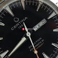Брендовая модель имеет чёрный циферблат с контрастными стрелками и часовой разметкой, что обеспечивает хорошую читаемость показателей в любых условиях. Стальной браслет надёжно обхватывает запястье, а предотвращает случайное расстёгивание. Часы работают за счёт швейцарского пружинного механизма ETA Powermatic 80Powermatic 80Эксклюзивный калибр от швейцарской компании ETA с увеличенным запасом хода до 80 часов за счёт удлинённой заводной пружины. Характеризуется улучшенной системой спуска со сниженным трением., его запас хода увеличен до 80 часов. Соблюдение DS ConceptDS ConceptDouble Security Concept, обозначает двойную надёжность и безупречную точность часов Certina. Двойная система защиты подразумевает обеспечение максимальной устойчивости к ударам и высоких показателей водонепроницаемости.. Корпус из нержавеющей стали 316L. Стекло из сапфира с покрытием «антиблик». Водостойкость 200 метров. Подсветка SuperLumiNovaЛюминесцентное покрытиеПозволяет считывать показания времени в темноте. Производители наносят на стрелки, часовые индексы, безель или поверхность циферблата светонакопительный состав, дающий холодное свечение.. Завинчивающаяся задняя крышка. Защищённая заводная головка. Календарь с индикацией числа и дня недели. Диаметр корпуса: 41 мм.